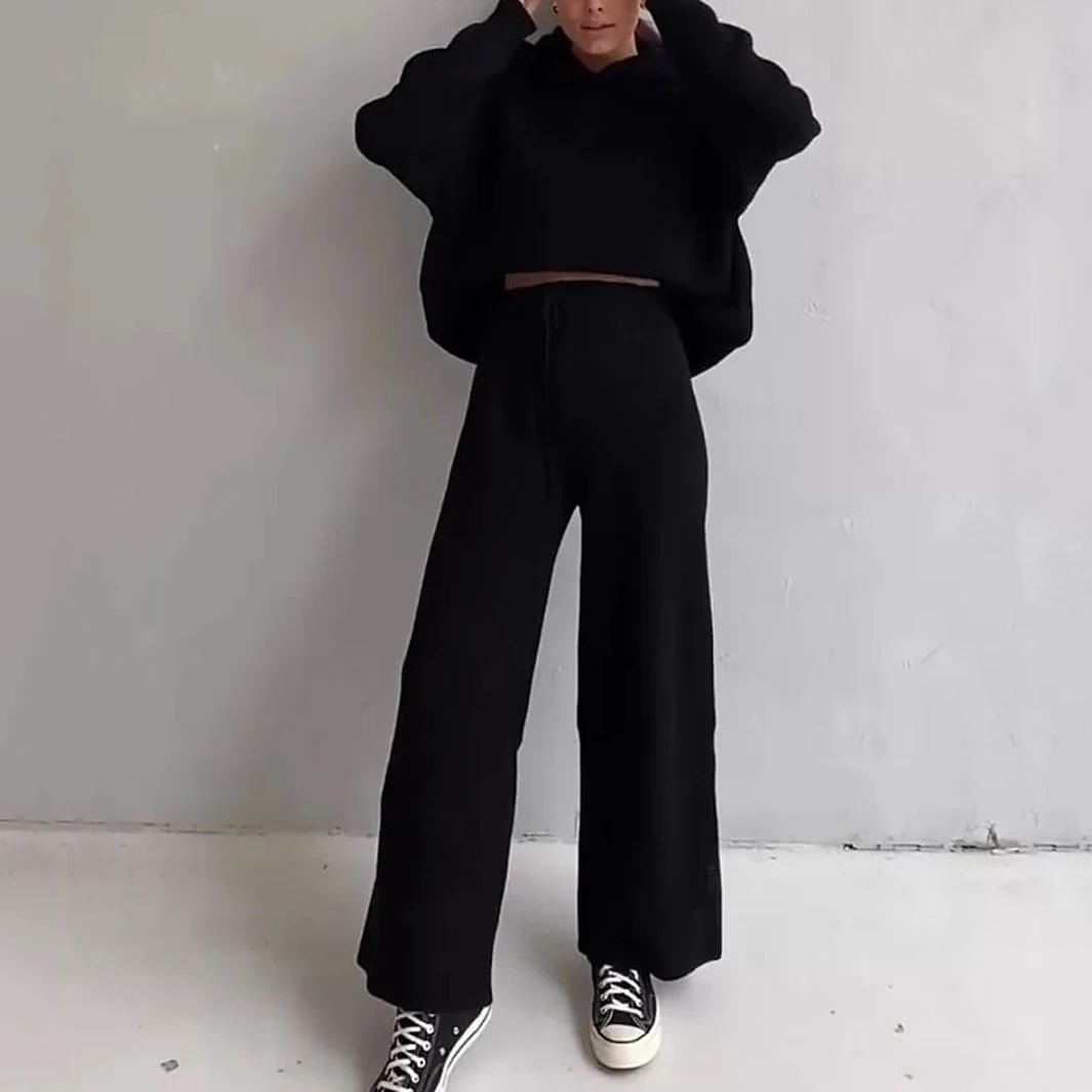 Комплект Julypalette женский из 2 предметов, Повседневная Толстовка с длинным рукавом, свитшот, топ с эластичным поясом, длинные брюки с широкими штанинами, Осень-зима