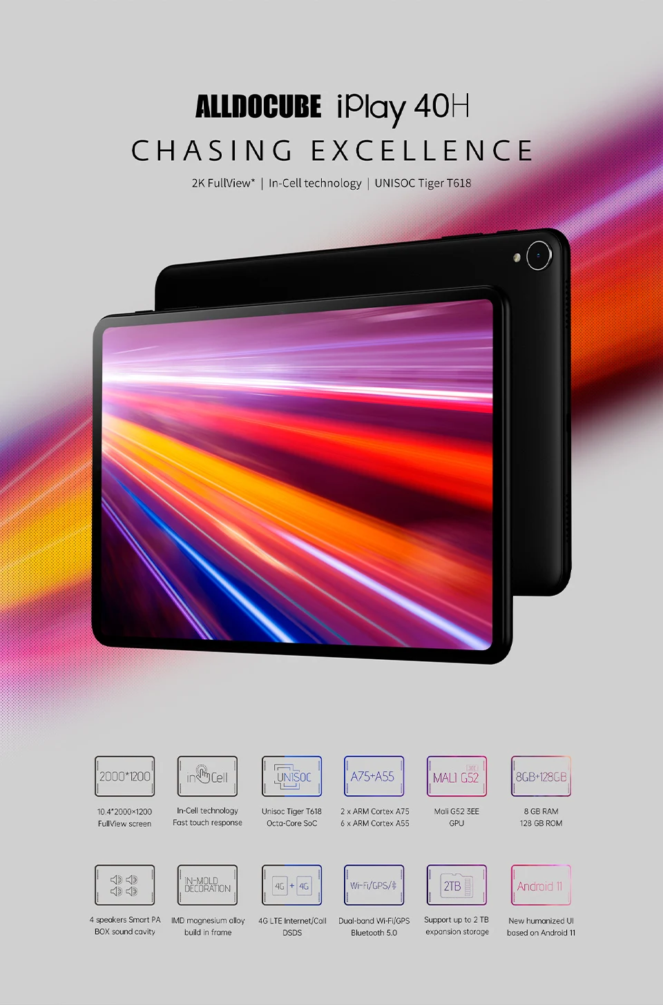 Планшет ALLDOCUBE iPlay 40H Android 11 2000 * 1200 IPS 8GB RAM 128G ROM One Cell Octa Core Tablet PC Dual 4G LTE BT5.0 CPU T618