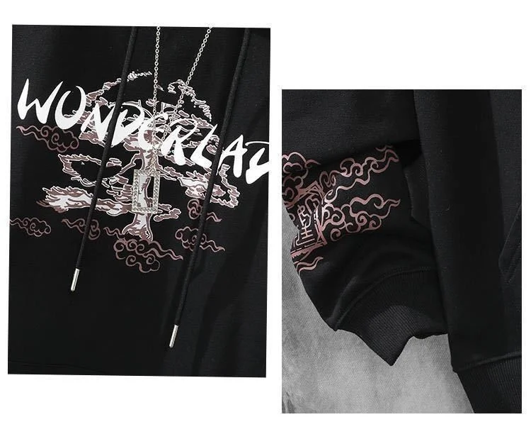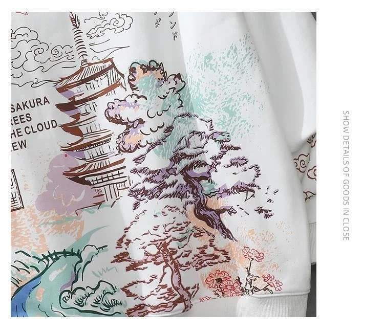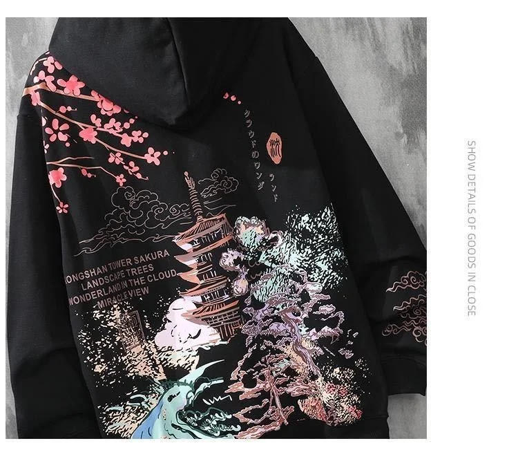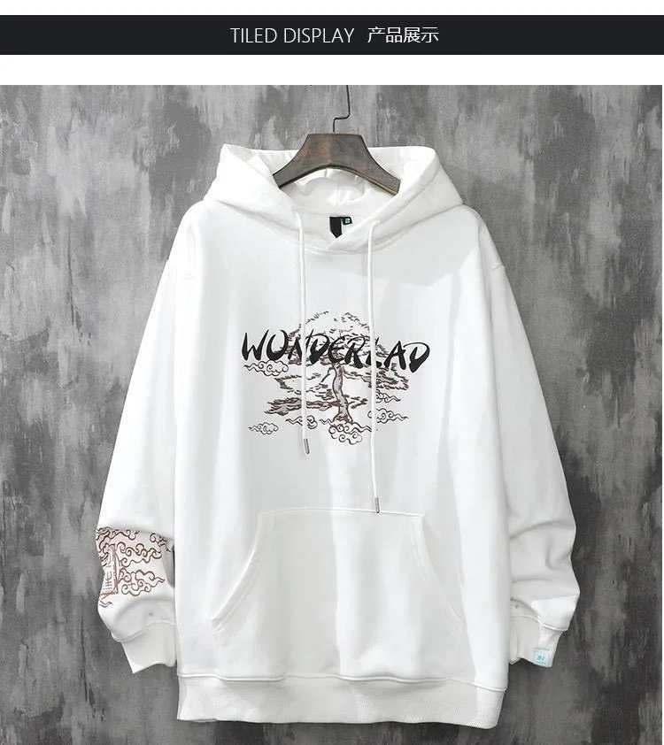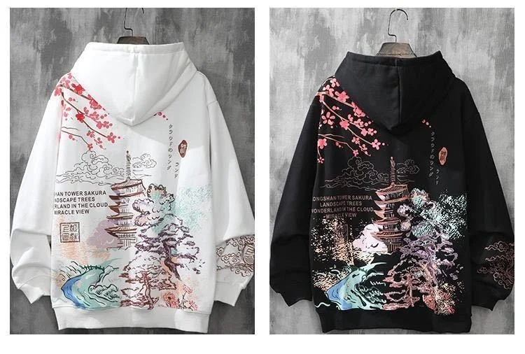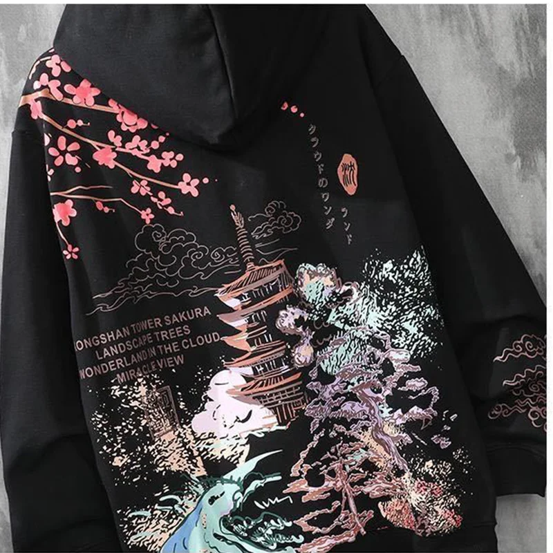 Мужские толстовки CoolTree, весна-осень, свитшот с японским пейзажным принтом и капюшоном, Мужская модная Толстовка в стиле Харадзюку, хип-хоп, уличная одежда