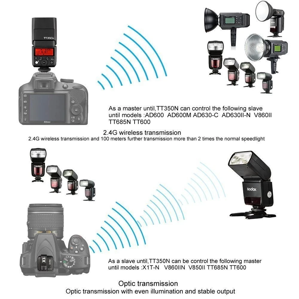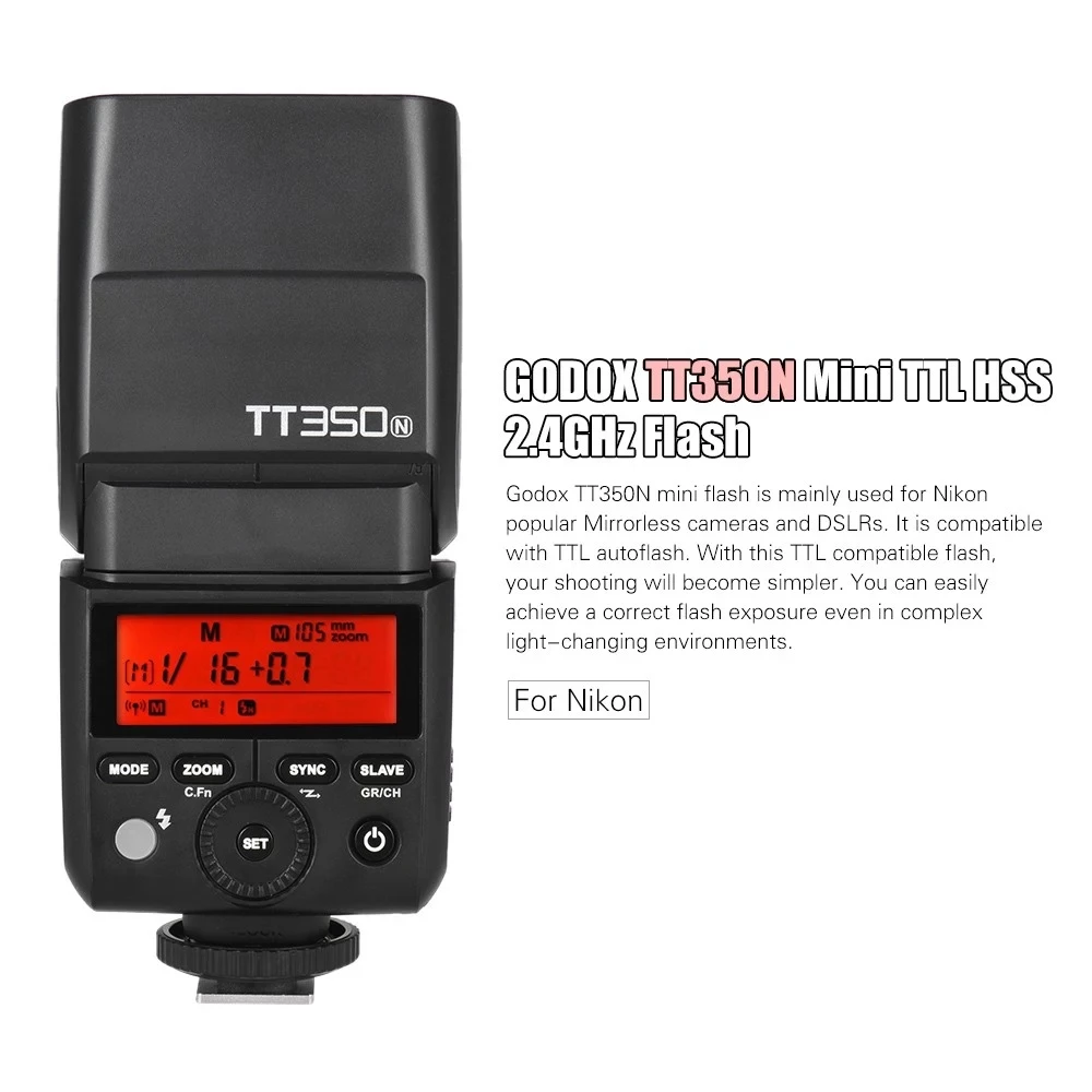 Мини-вспышка Godox TT350N, 2,4G, HSS 18000s TTL GN36, беспроводной триггерный передатчик X1T-N, подходит для камер Nikon