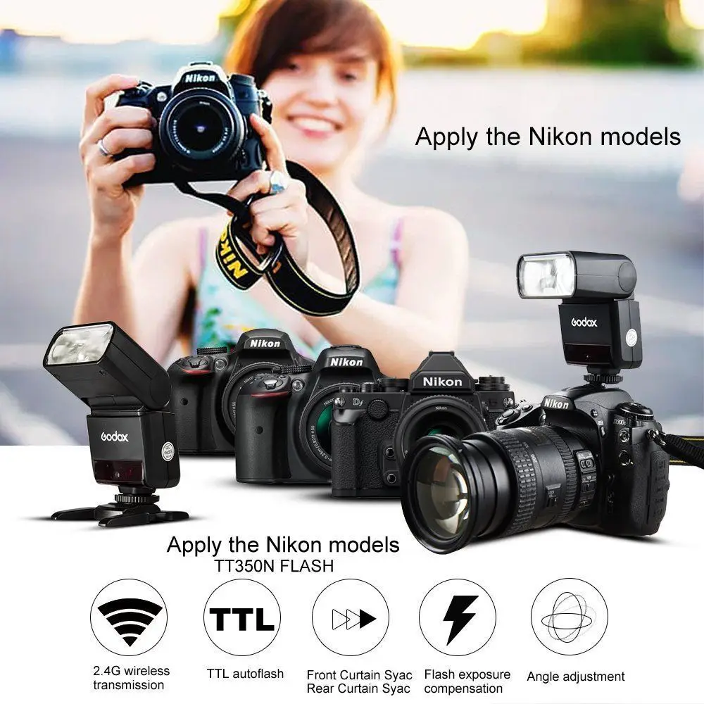 В наличии! Вспышка Godox TT350N 2,4G HSS 1/8000s TTL GN36 с передатчиком X1T-N для камеры Nikon D7500 D7200 D7000 D7100 D5600 D5500 D5300 D5200 D5100 D5200 D5000 D3400 D3300 D3200 D3100 D810a D750 D610 D500 D5 D4s
