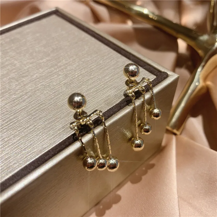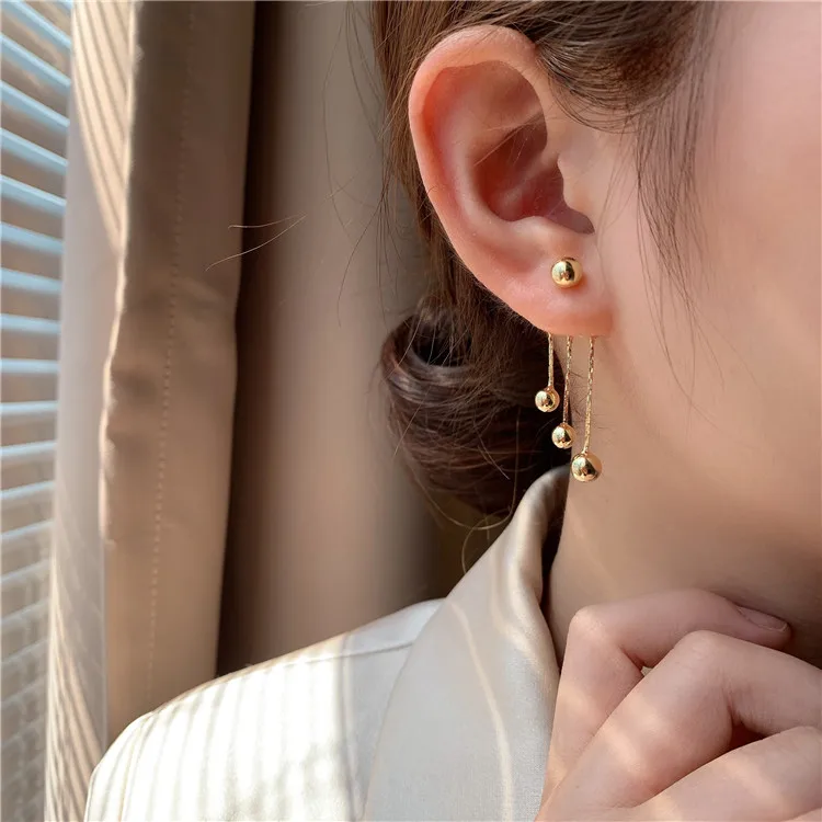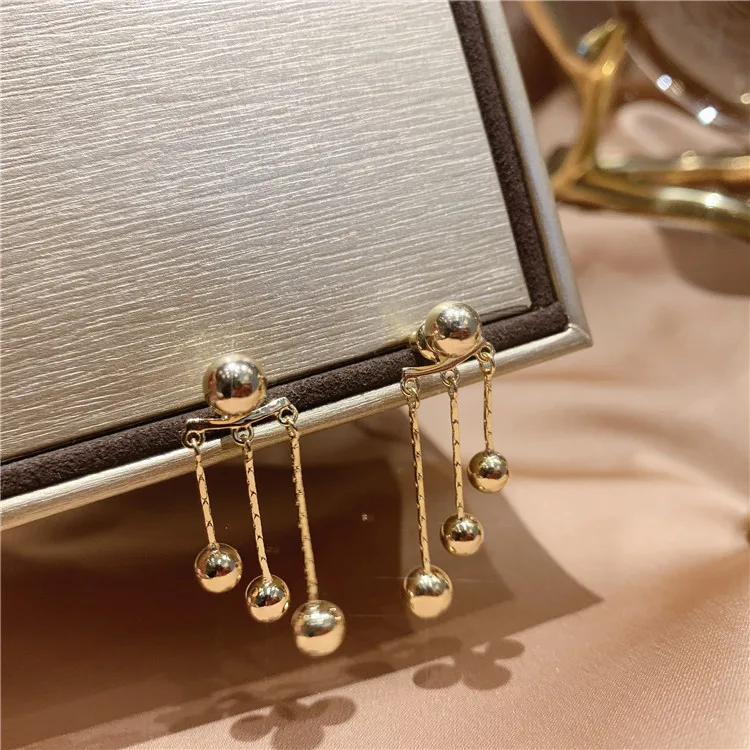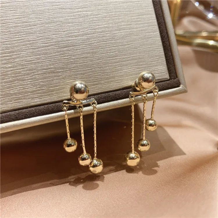 Новинка 2021, висячие серьги с кисточками и золотистыми горошинами для женщин, корейская бижутерия, необычные аксессуары для ушей для девочек в неоготическом стиле