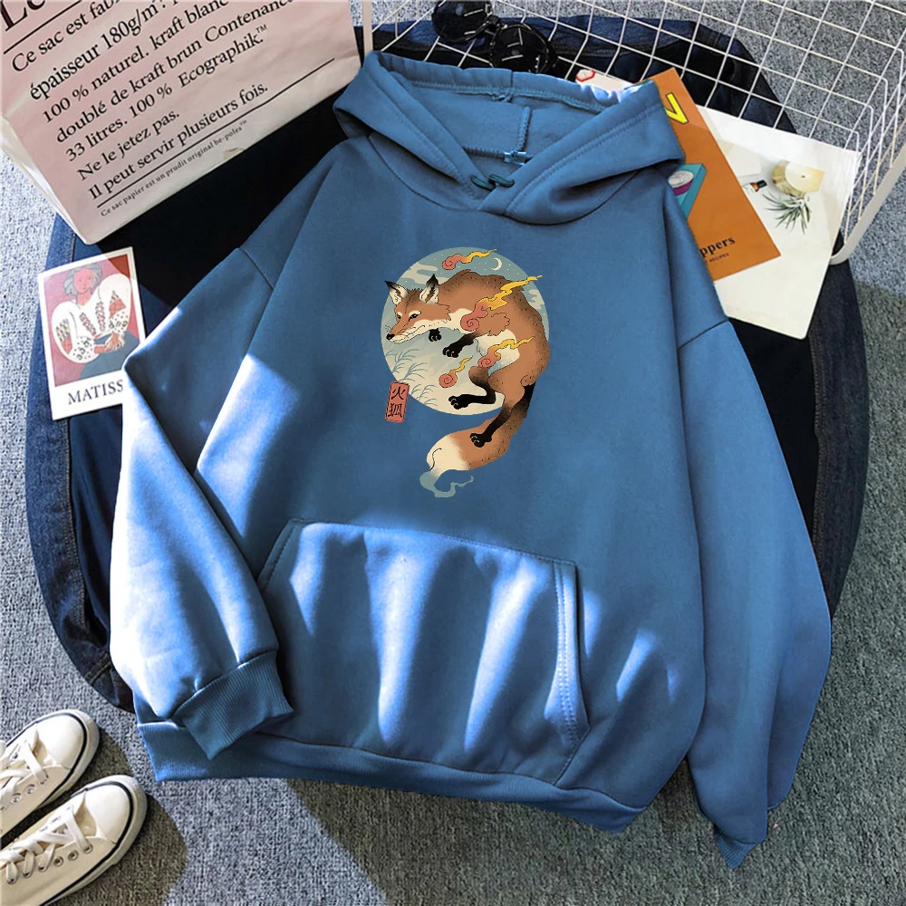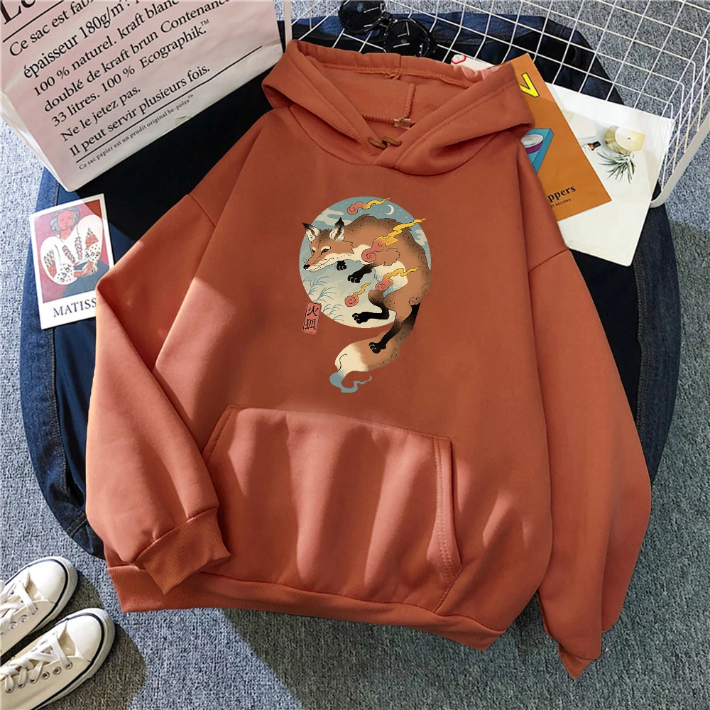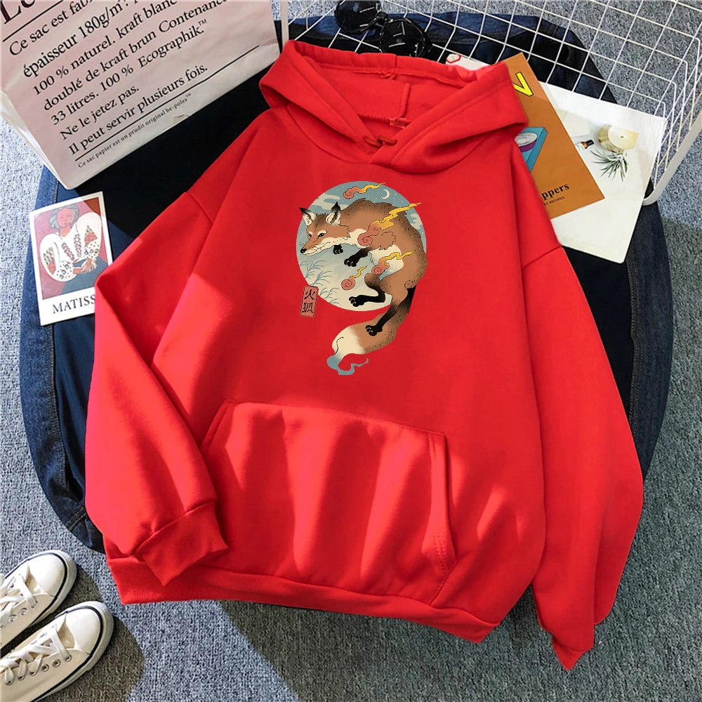 Мягкая спортивная одежда, мужская толстовка с принтом в японском стиле Ukiyoe Firefox, винтажная Теплая мужская толстовка, свободные толстовки большого размера, 2021