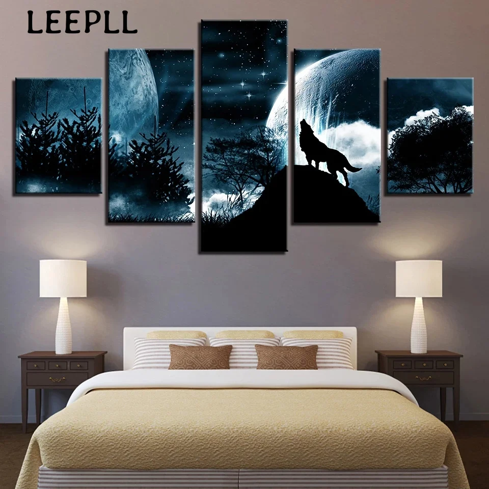 Hd Печатный холст 5 шт. волк воет в облаках модульная фотография дл...