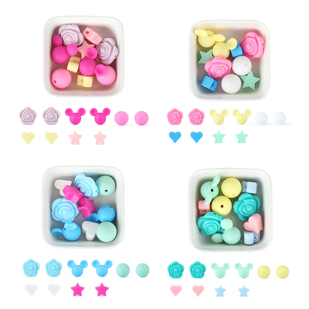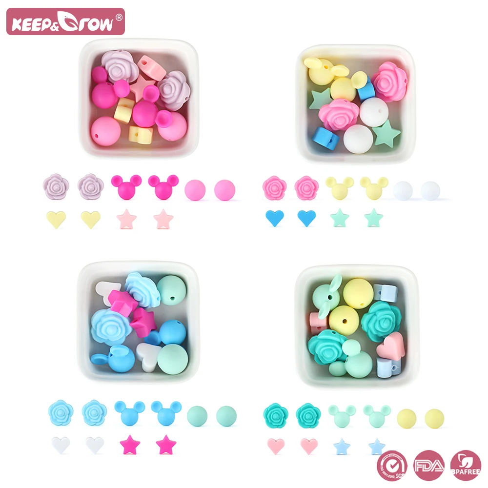 Keep & Grow 10 шт. силиконовые бусины с Микки звездой, сердечком, круглые бусины, бесплатная доставка, аксессуары для самостоятельного изготовления, бусы для прорезывания зубов для малышей