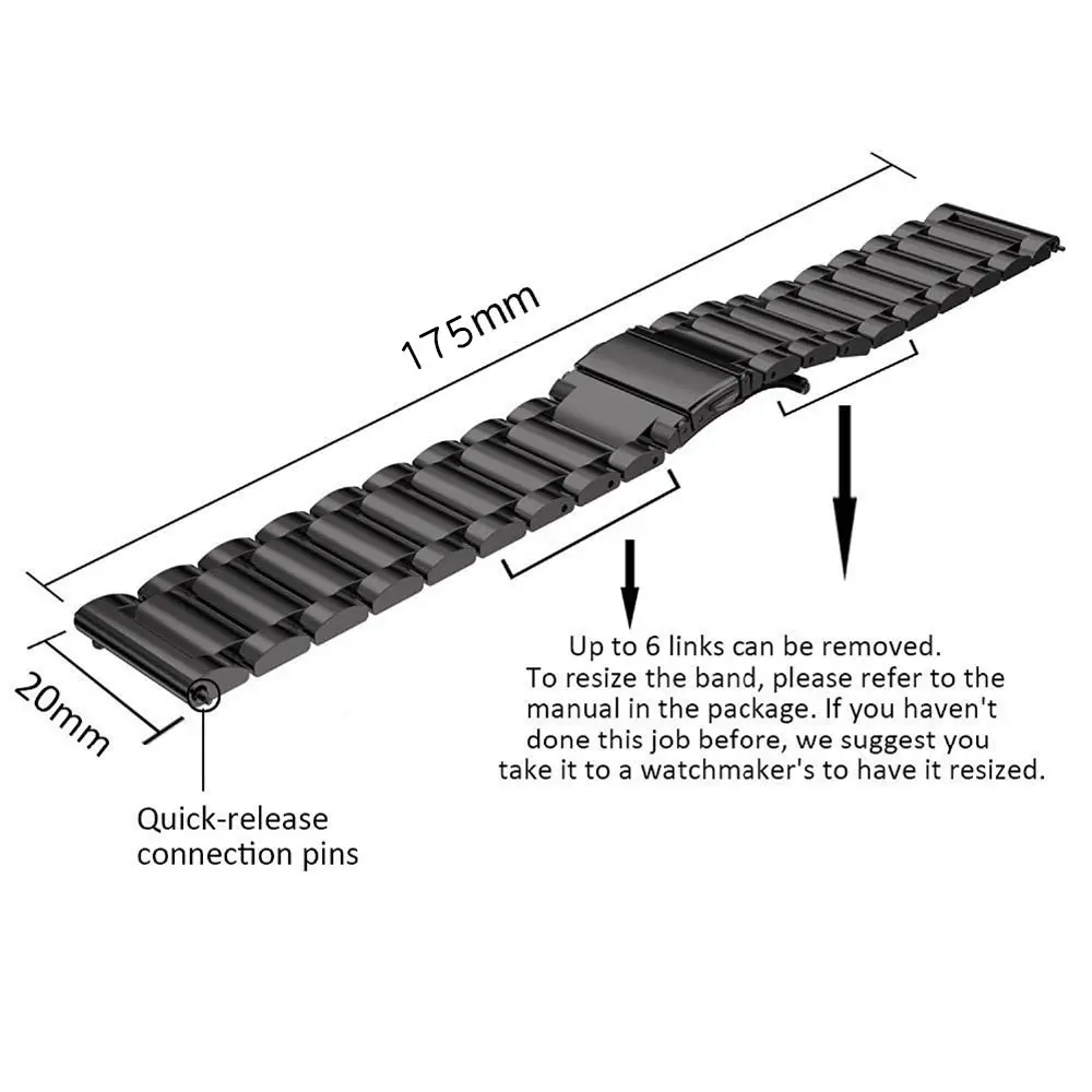 Посылка включает в себя: 1X браслет из нержавеющей стали 2X быстроразъемные булавки (Устройство для удаления лент, вы должны добавить в корзину и купить в пачке)