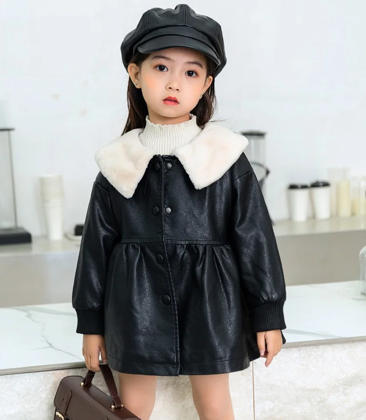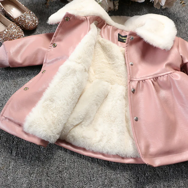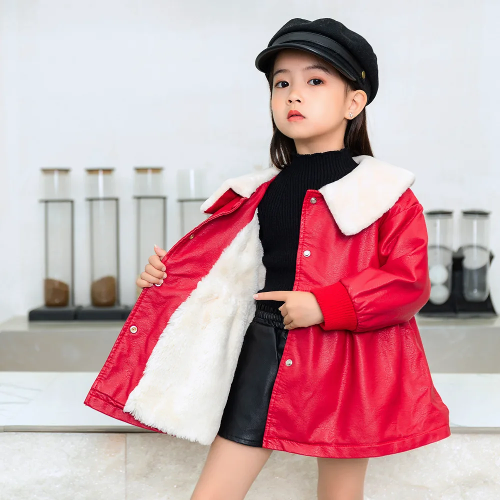 Детское флисовое пальто для девочек, модная кожаная куртка на осень и зиму, 2021