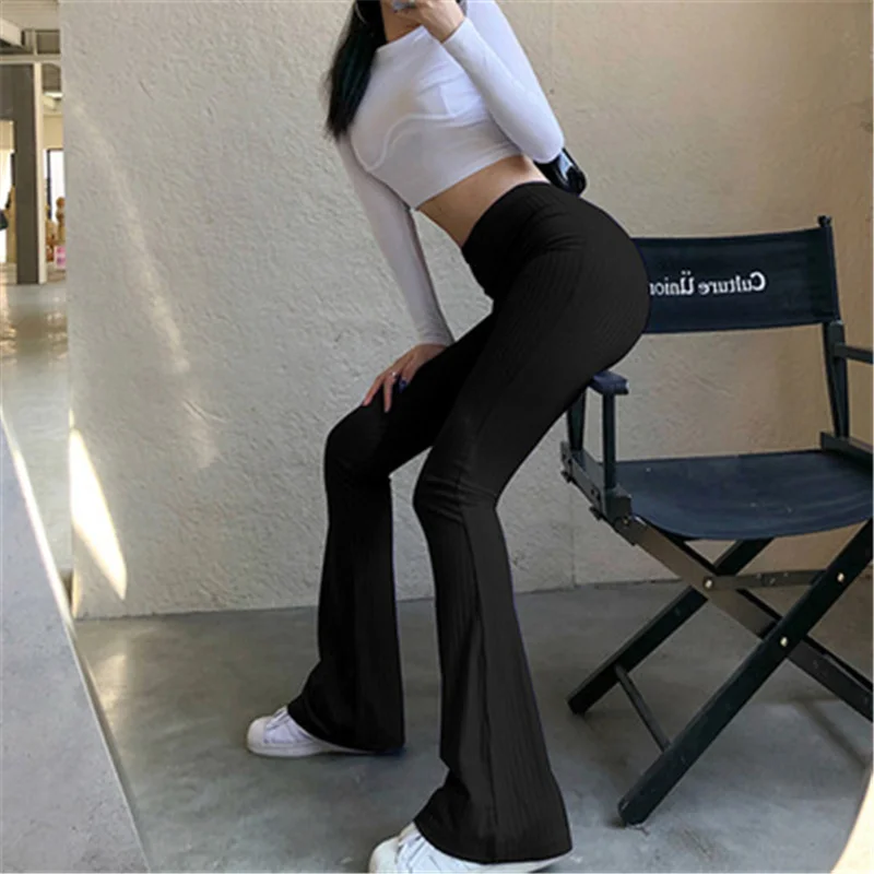Женские пикантные облегающие брюки-клеш, однотонные брюки с высокой...