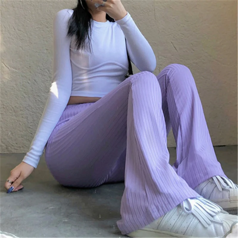 Модные фиолетовые ребристые джоггеры Y2K, женские трикотажные раскл...