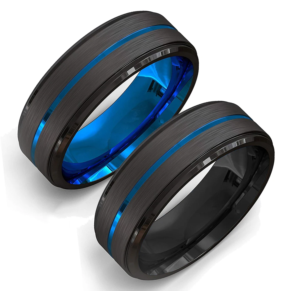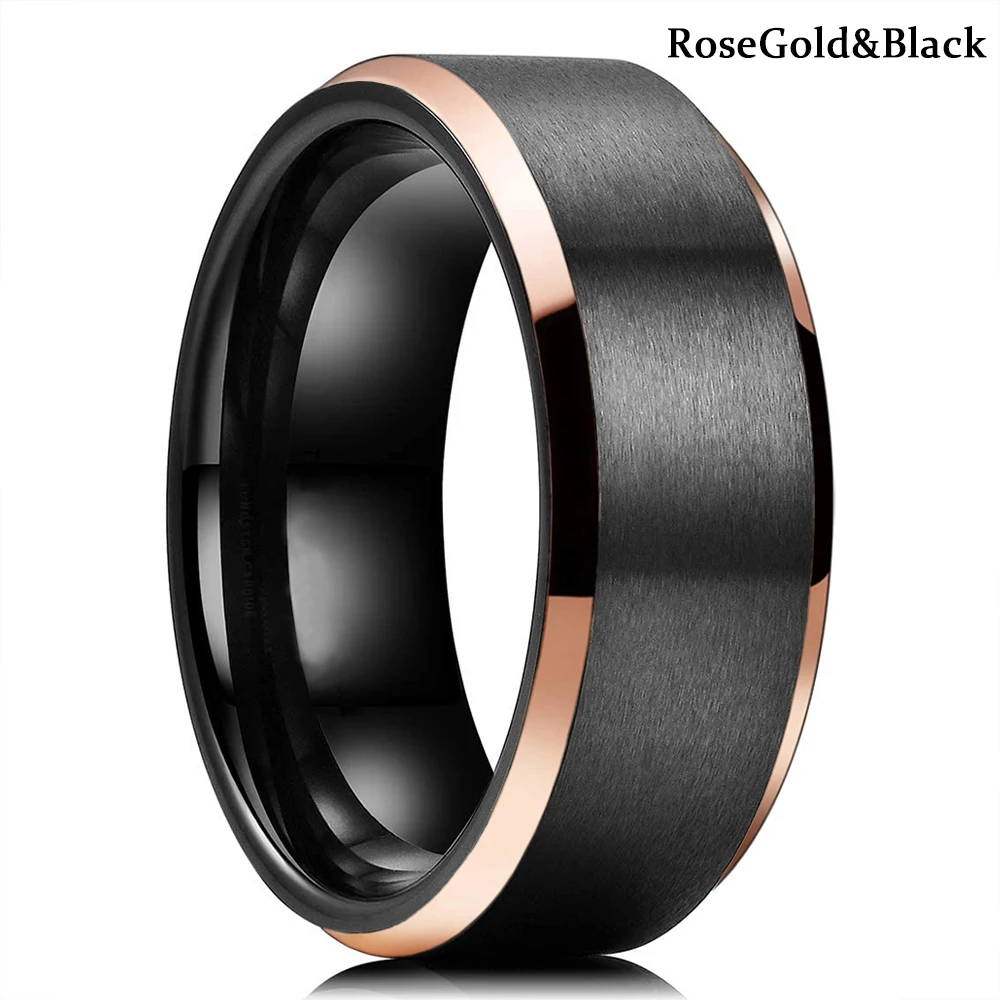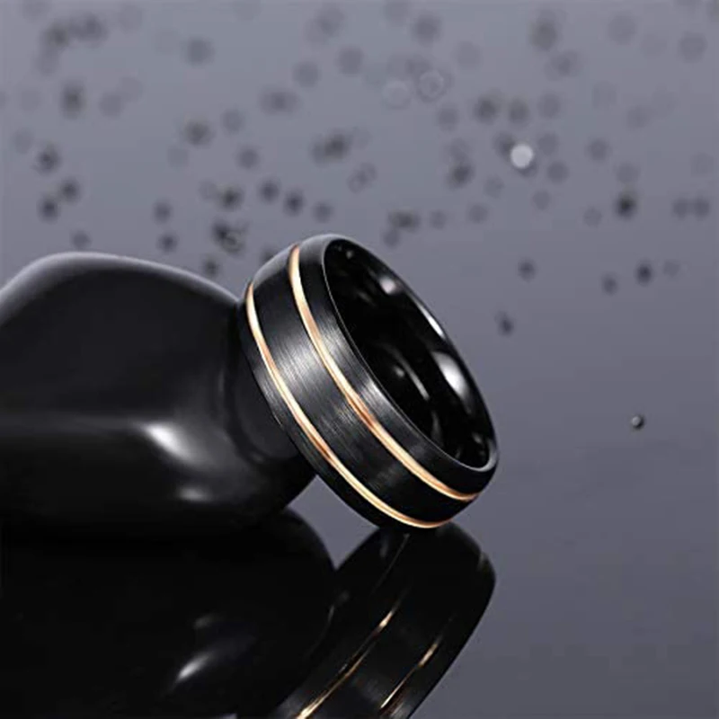 Модные мужские черные кольца из карбида вольфрама, 8 мм, розовое золото, тонкая канавка, купольное кольцо для помолвки, мужское обручальное кольцо, оптовая продажа