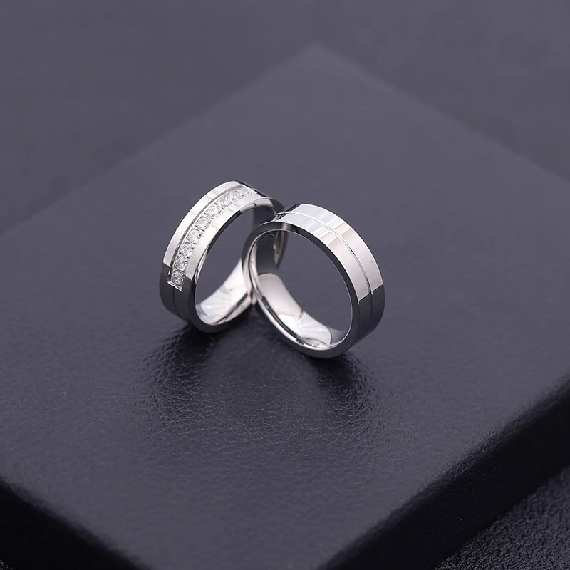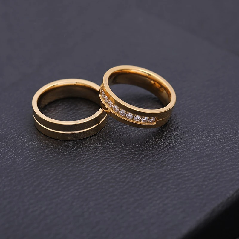 Мужское и женское кольцо с инкрустацией из титановой стали