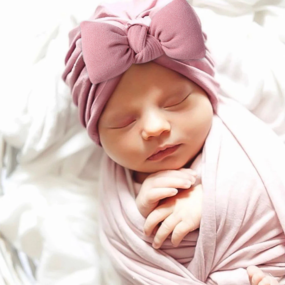 Шапка-тюрбан детская с бантом, мягкая, для новорожденных