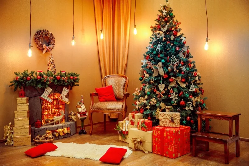 Laeacco Рождественская елка интерьер подарок камин День Рождения фо...
