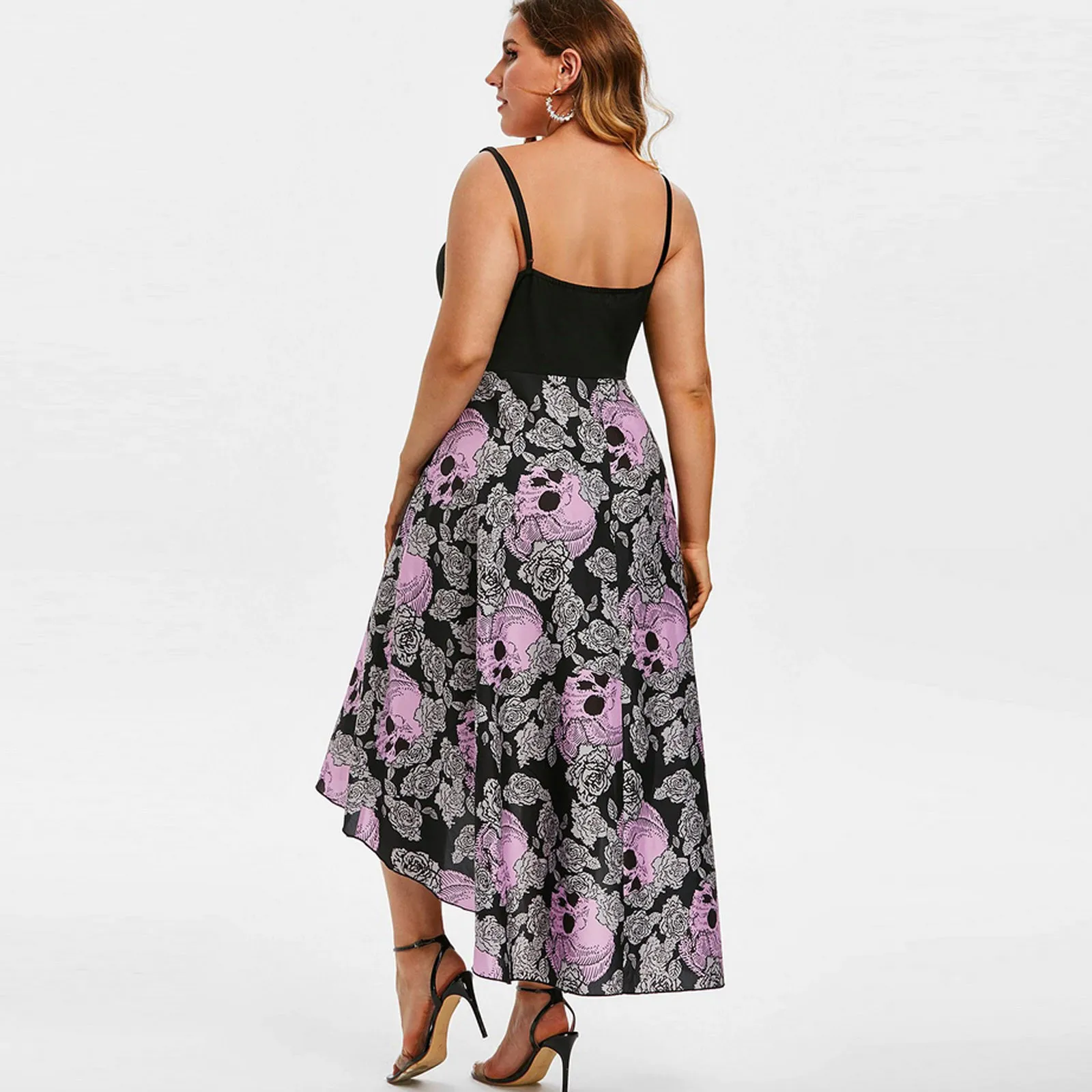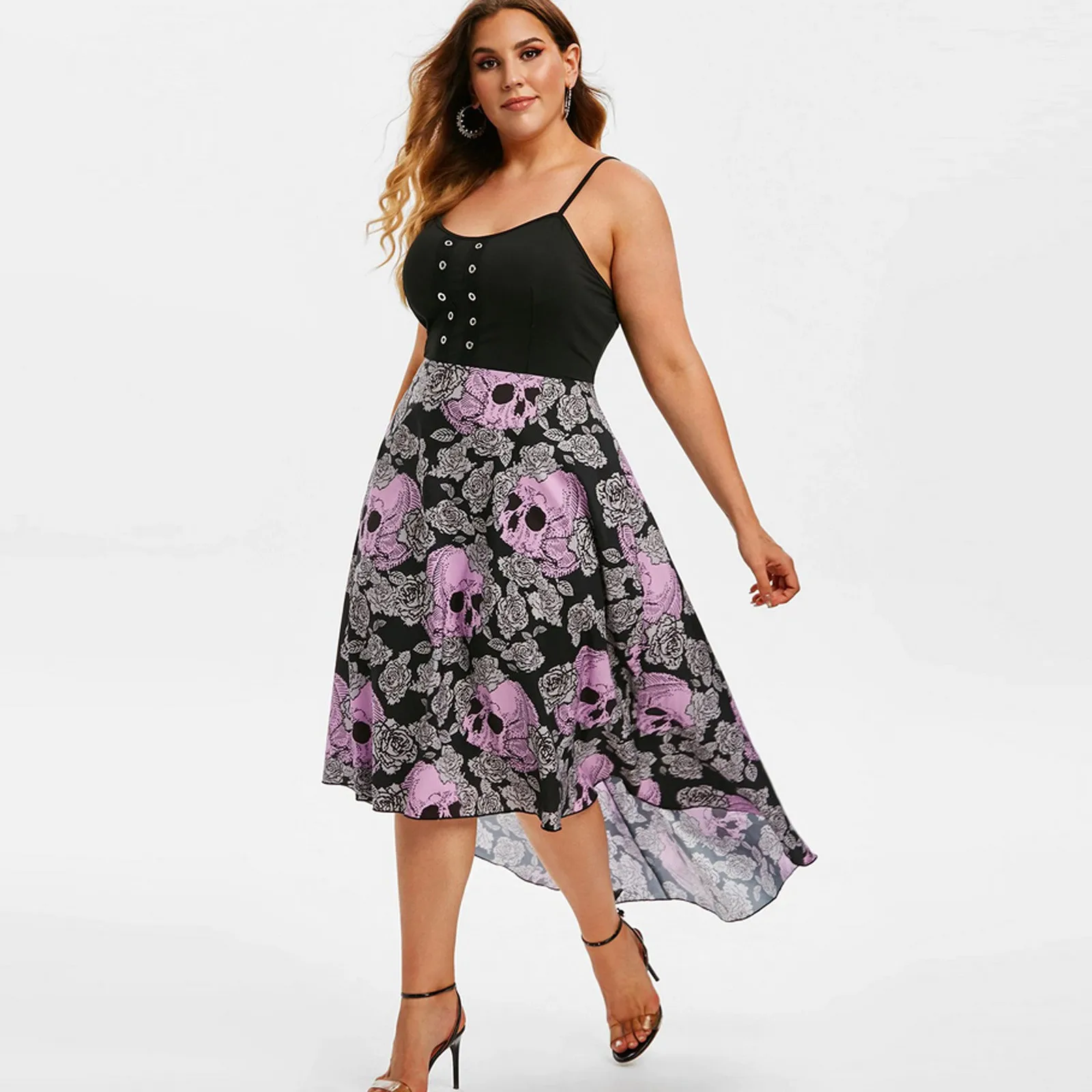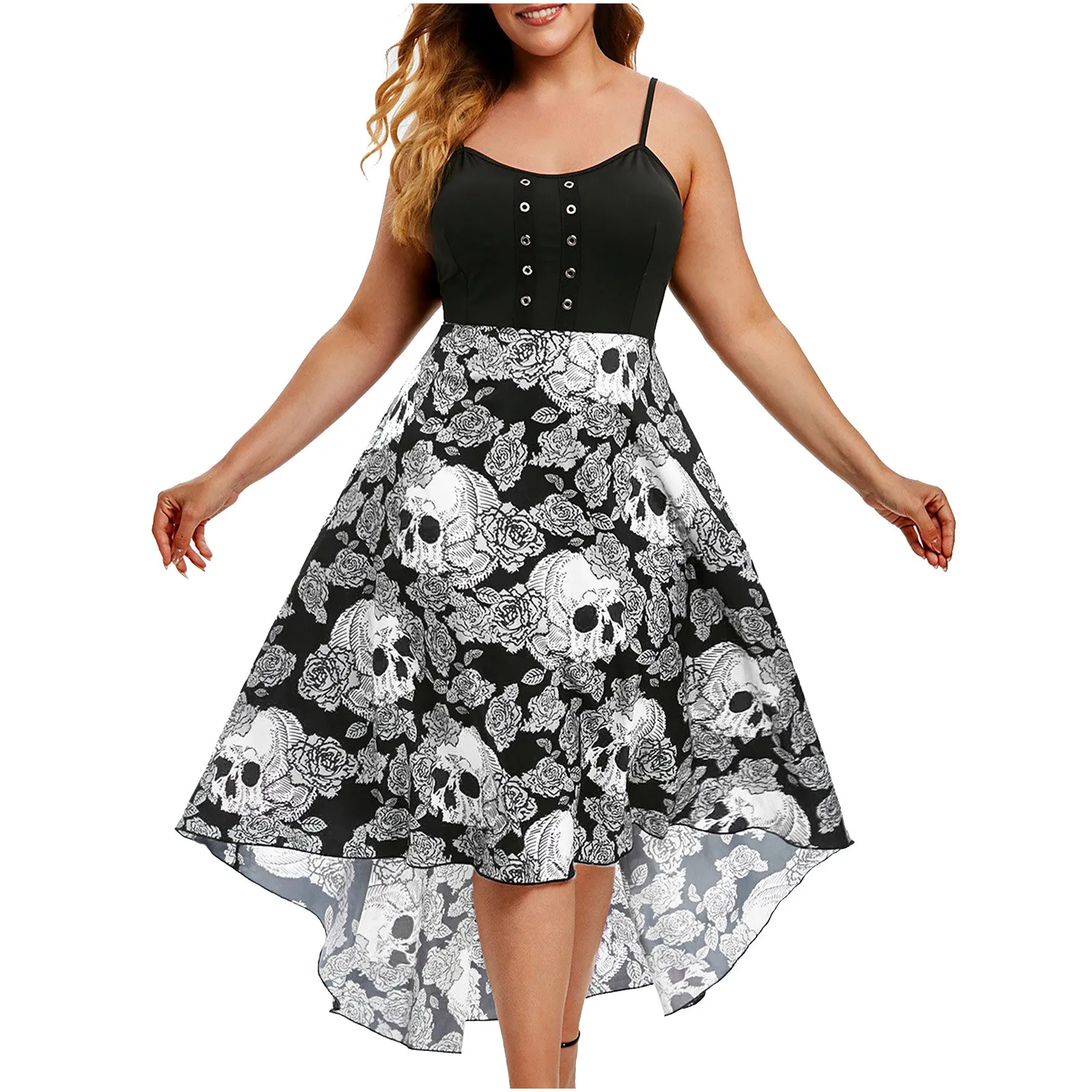 Модное Женское Платье без рукавов с люверсами и цветочным принтом в виде черепа