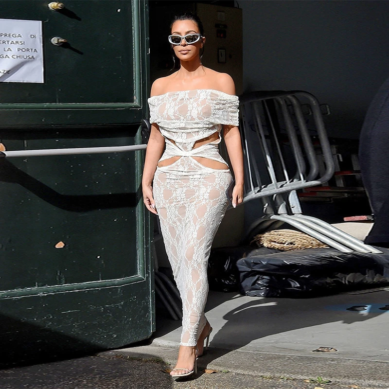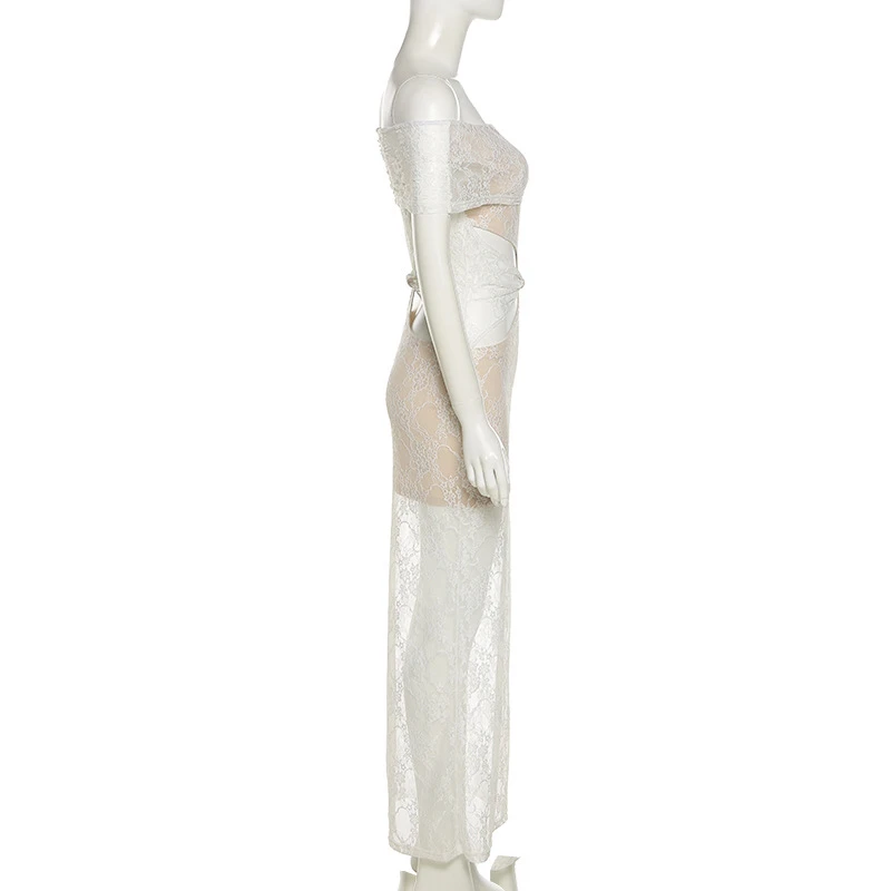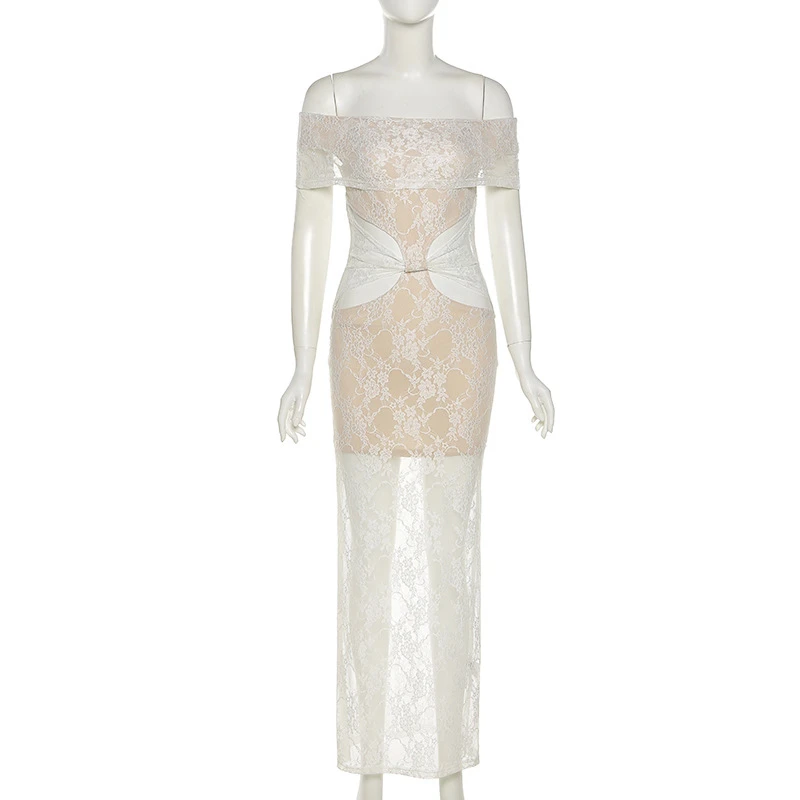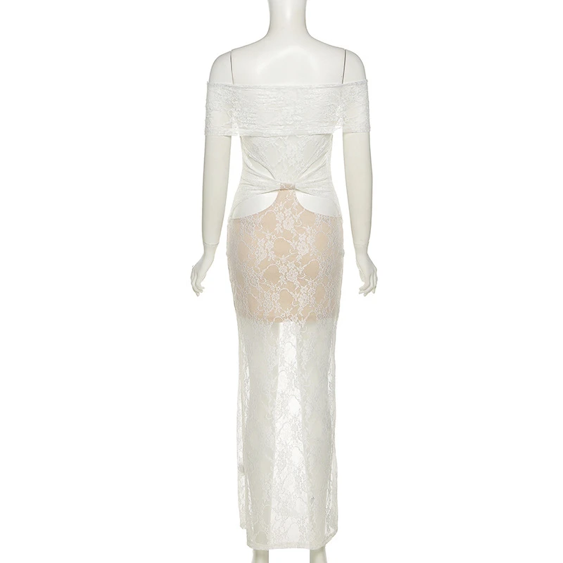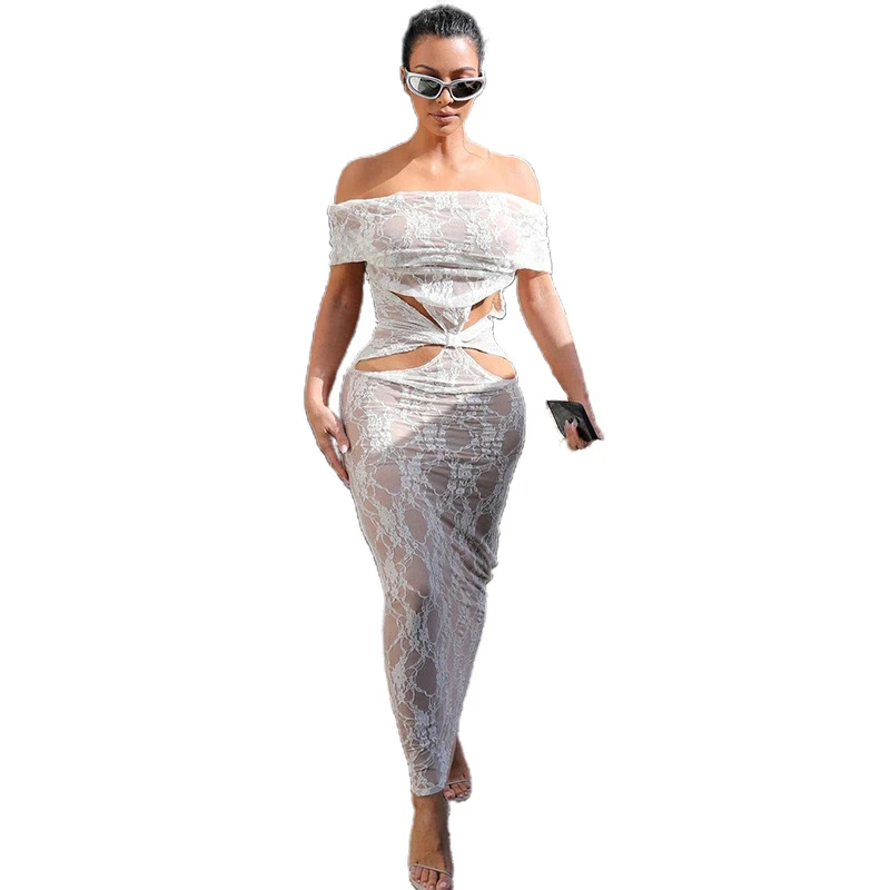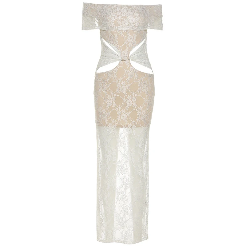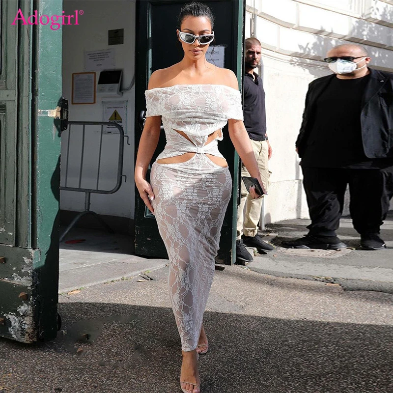 Женское кружевное платье макси Adogirl, элегантное сексуальное платье с вырезом лодочкой и открытыми плечами, прозрачное облегающее длинное Клубное платье для вечеринок