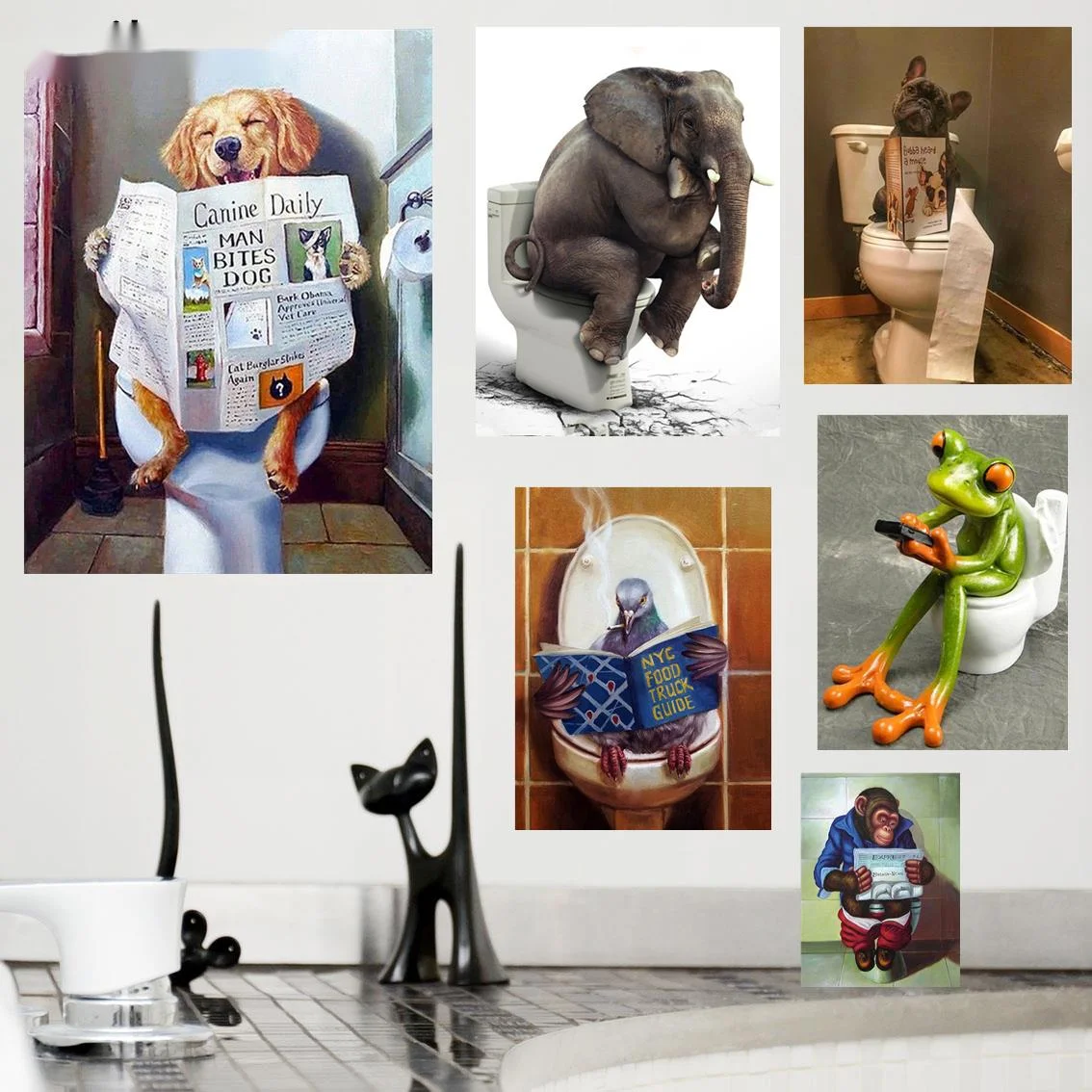 Абстрактный креативный постер в скандинавском стиле с животными, собака, слон, лягушка, туалет, Картина на холсте, смешная картина, украшение для дома, туалет, ванная комната