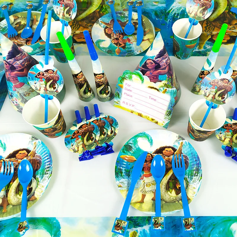 Набор для украшения дня рождения Disney, Моана, Maui, скатерть, бумажная тарелка, салфетка, флаг, детские игрушки для будущей мамы