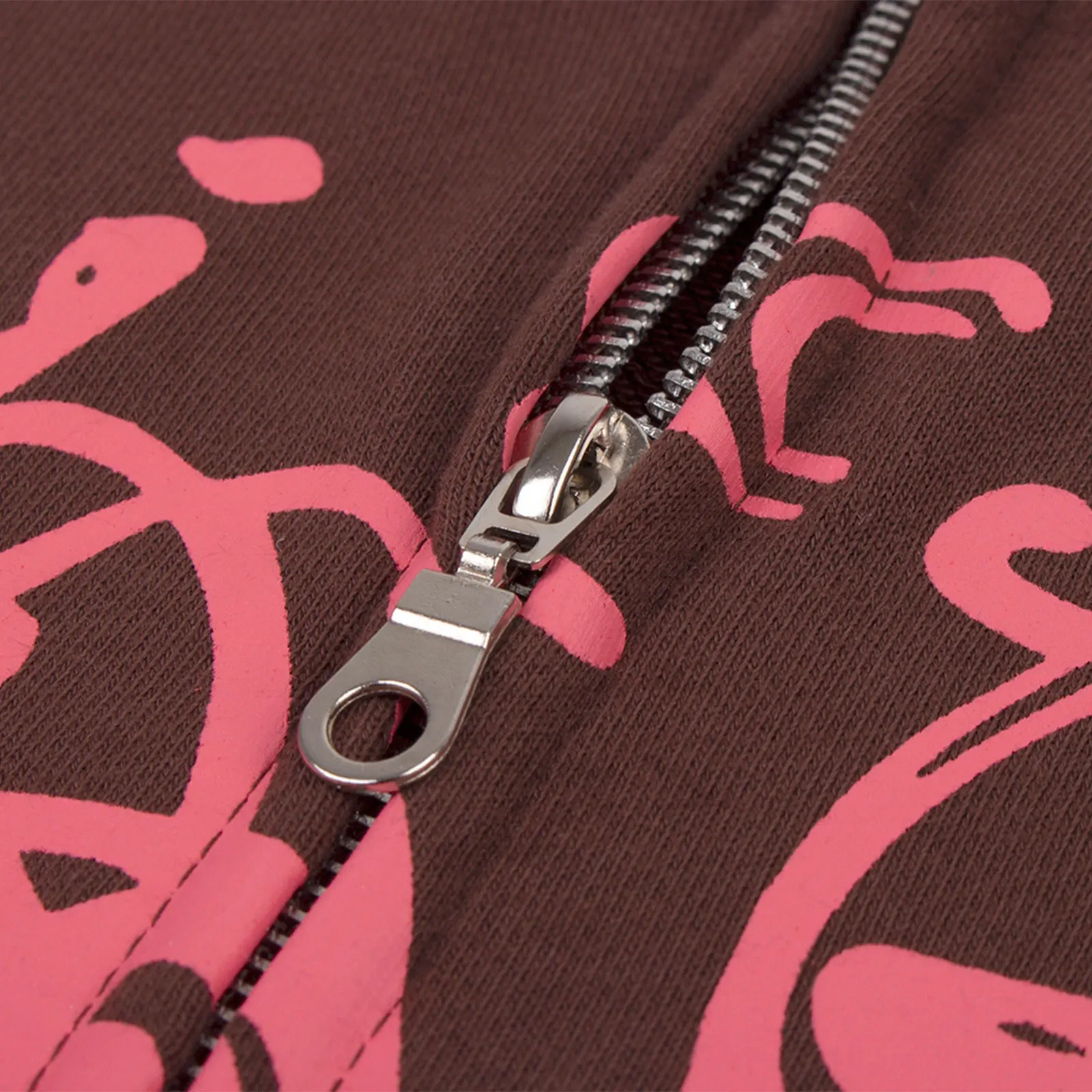 Женские толстовки с капюшоном на молнии, повседневные толстовки большого размера с длинным рукавом и принтом граффити, коричневого цвета, Осень-зима