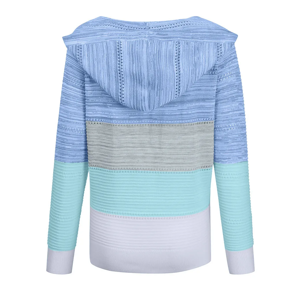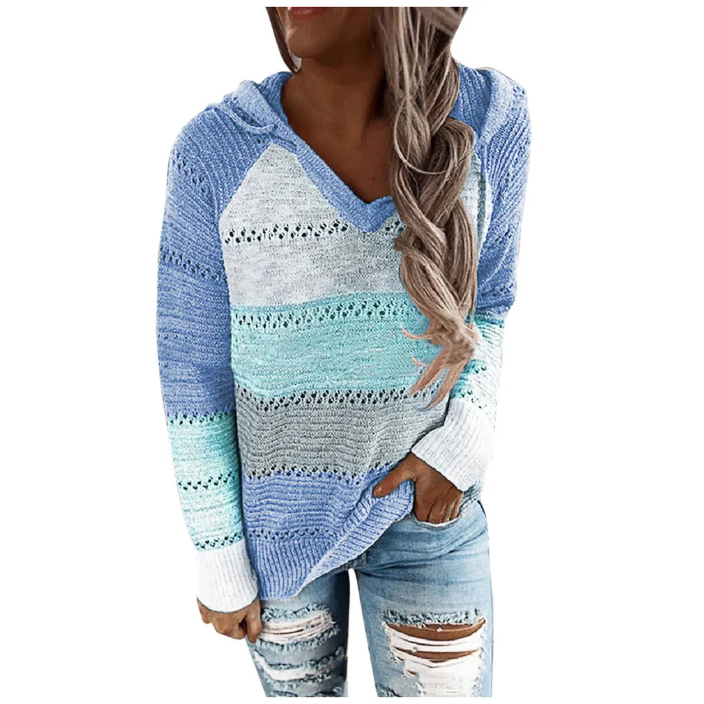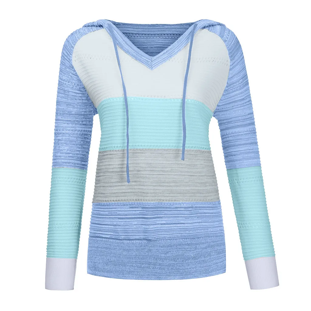 Модные женские повседневные Лоскутные Топы с v-образным вырезом и длинными рукавами с капюшоном
