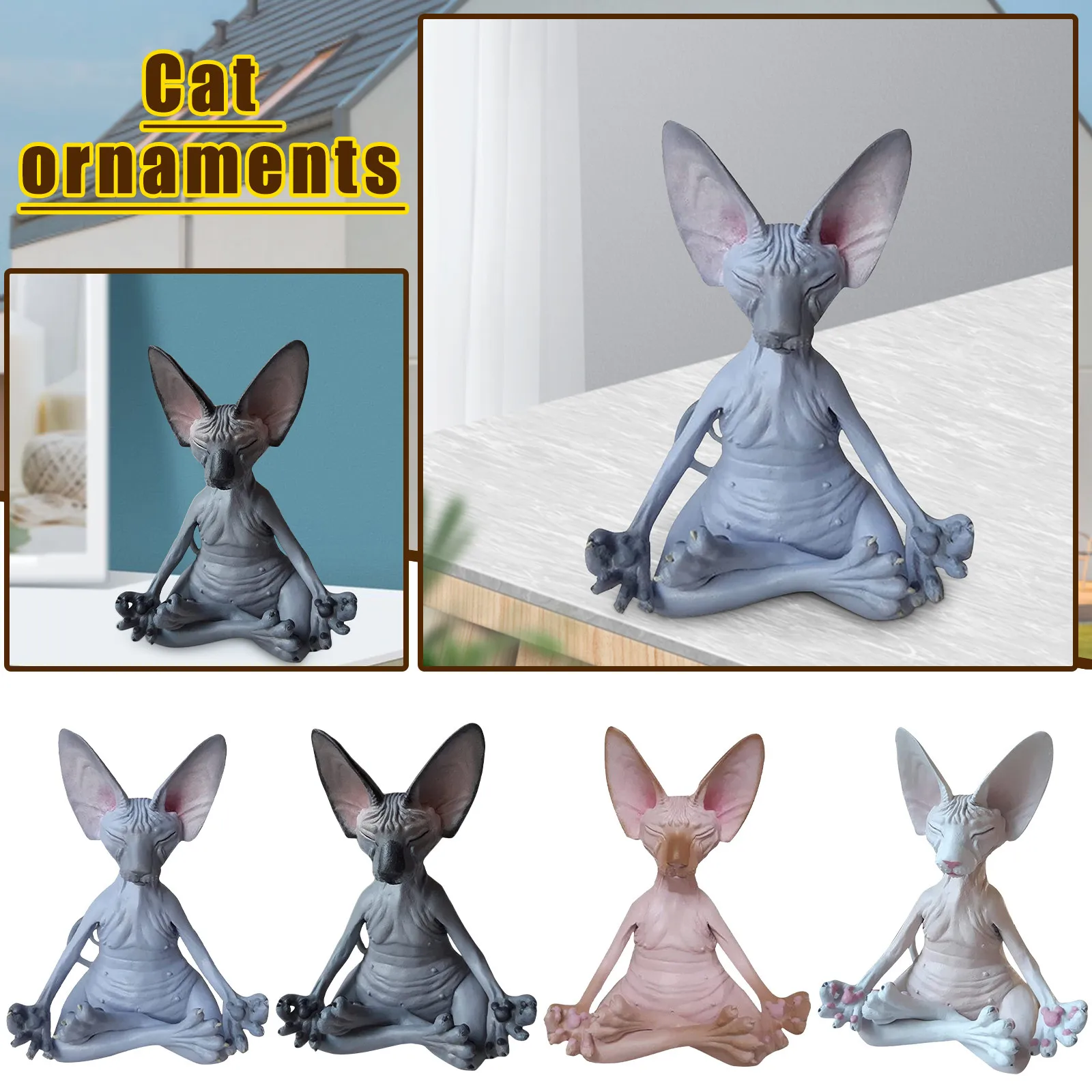 Скульптура кошка-сфинкс, причудливая статуэтка Будды, медитация, ра...