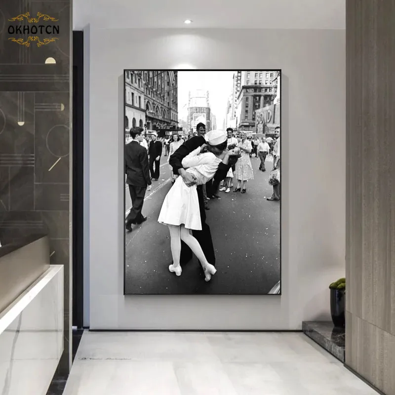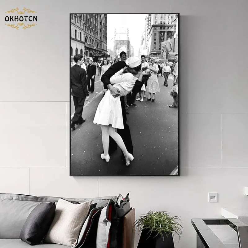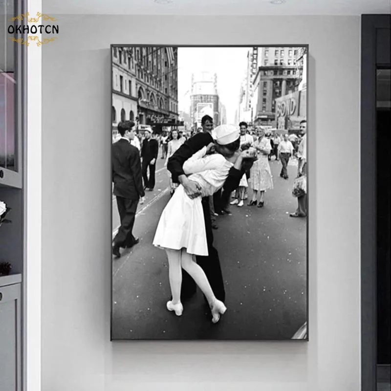 Винтажная искусственная картина, поцелуй века, Вторая мировая война, холст, живопись, настенное искусство для гостиной, домашний декор
