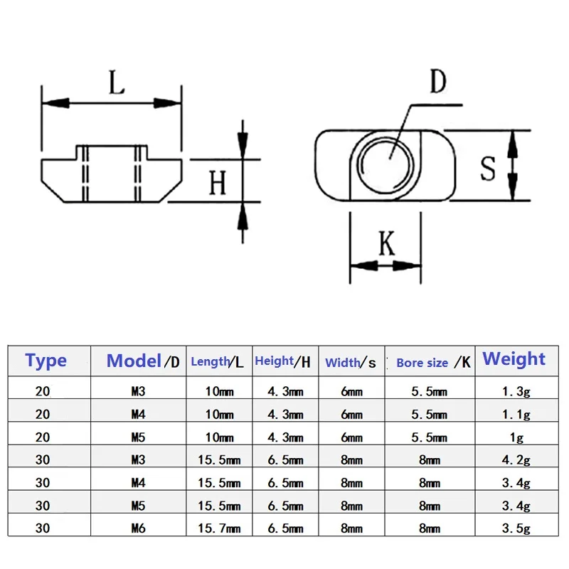 2050 шт. M3M4M5M6 для слота серии 20 30, Т-образная скользящая T-образная гайка, молоток, крепежная гайка, коннектор 2020, алюминий