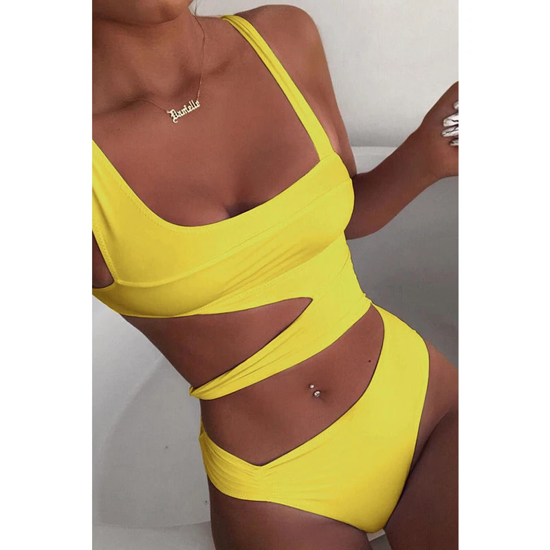 Цельный купальник с вырезами для женщин, новинка 2022, бандажный монокини с пуш-ап, женский купальный костюм, Цельный купальник, летняя пляжная одежда
