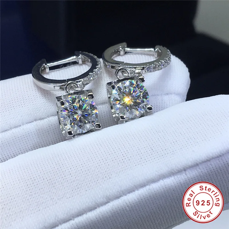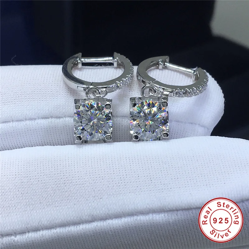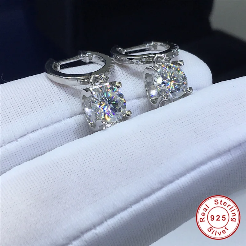 Превосходные бриллиантовые серьги с муассанитом, круглые серебряные...