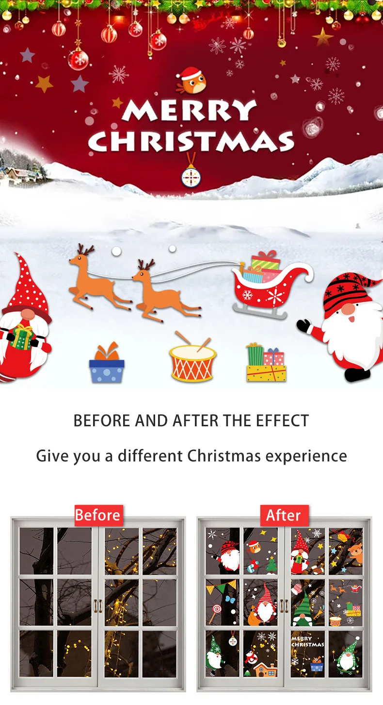Рождественские украшения, наклейки на окна, Мультяшные наклейки на стену с Санта-Клаусом и оленем, наклейки на стену для дома, гостиной, наклейки на стекло магазина, новогодние наклейки