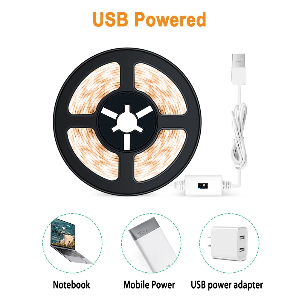 Светодиодные ленты с датчиком движения рук, гибкая лента с питанием от USB кабеля, Диодная лампа для подсветки шкафа, кухни, кровати, 2345 м, 5 В