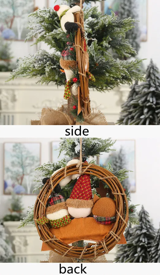 Рождественские украшения, Рождественский венок, ротанговая гирлянда, подвеска в виде Санты, снеговика, окна, двери, Рождественское украшение для дома, новый год