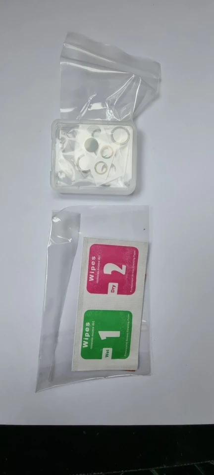 1,70 евро 3 недели до Майорки Испания Шайбы клейкие на одной стороне и имеют нижний диаметр для Samsung A33 Линзы были хорошими, хотя 1 был или плохо сделан, сломан снаружи. Смотрите фото. Очень плохая упаковка. Наклейки согнуты и поэтому деформированы напряжением. Я не знаю, что мы скажем. Я установил его, и я не уверен, что стекло упало