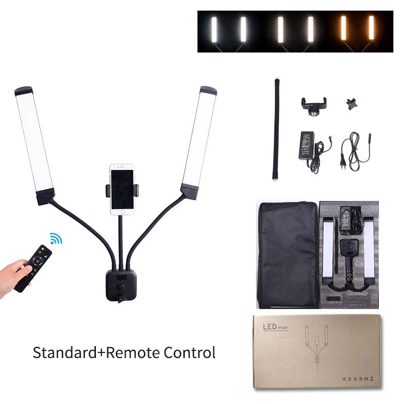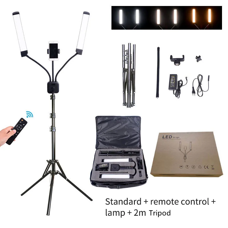 Светодиодная кольцесветильник для фотостудии с двойными ручками и штативом длиной 200 см, двойные светодиодные ленты с подставкой 3300K-5500K, 224 светодиодов для телефона