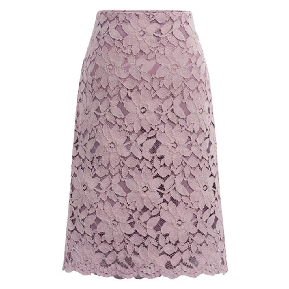 Женская кружевная юбка-карандаш, черная облегающая юбка до колен с завышенной талией и вырезами, модель XXXXL в Корейском стиле, 2022