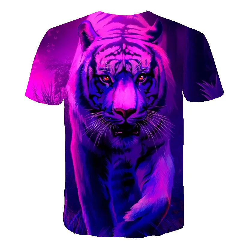 Футболка с 3D-принтом тигра и коротким рукавом для мальчиков и девочек