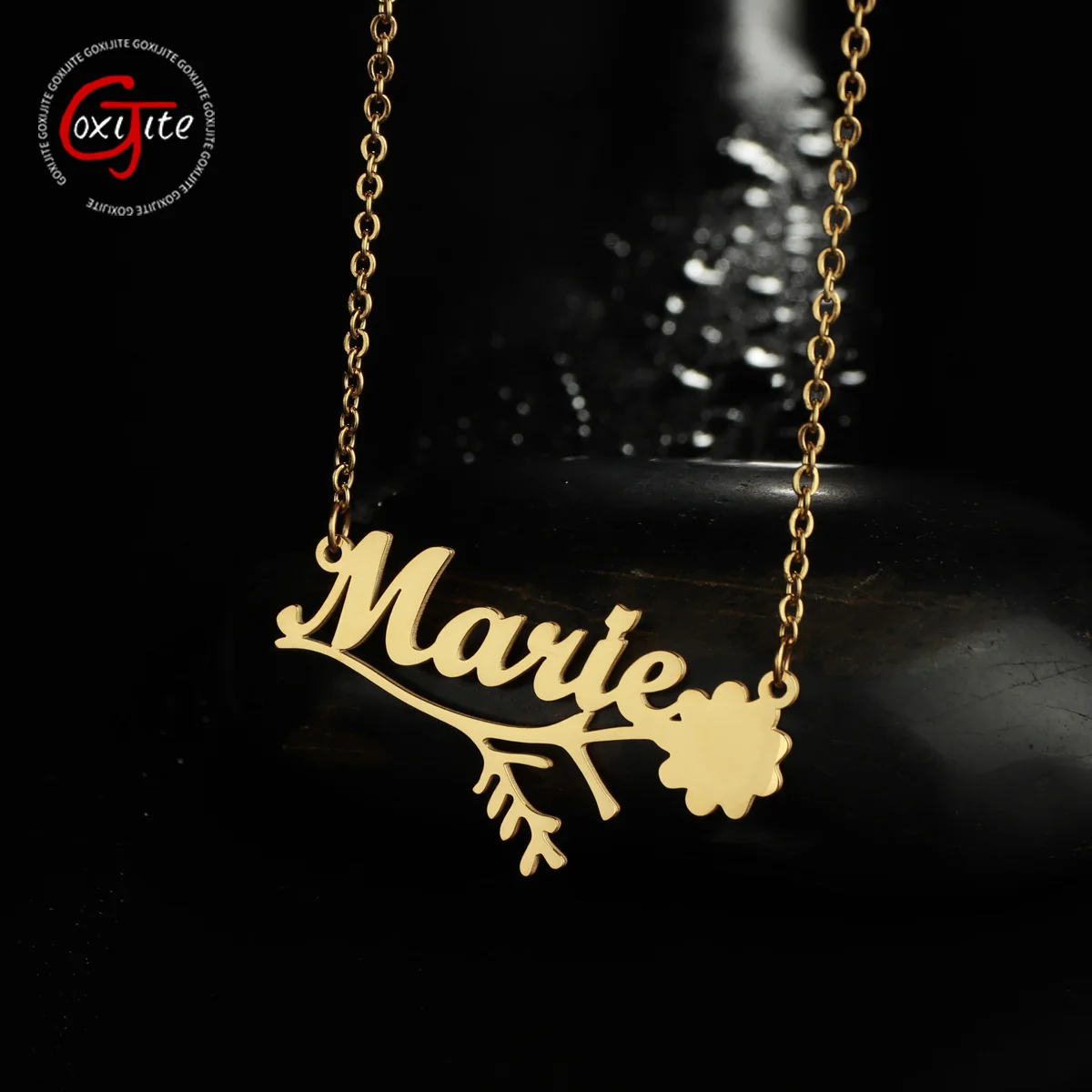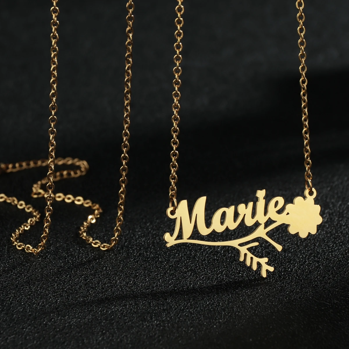 Название: ожерелье с цветами для женщин и девочек, ожерелье из нержавеющей стали кулон-табличка с именем, Винтажные Украшения на заказ, подарок
