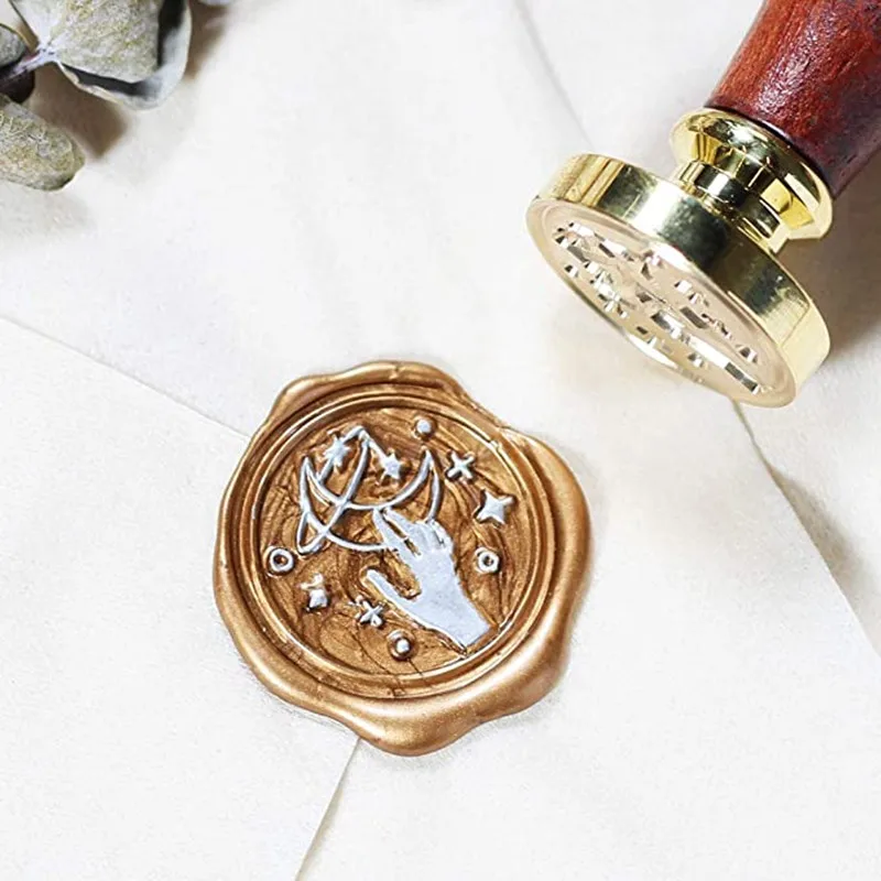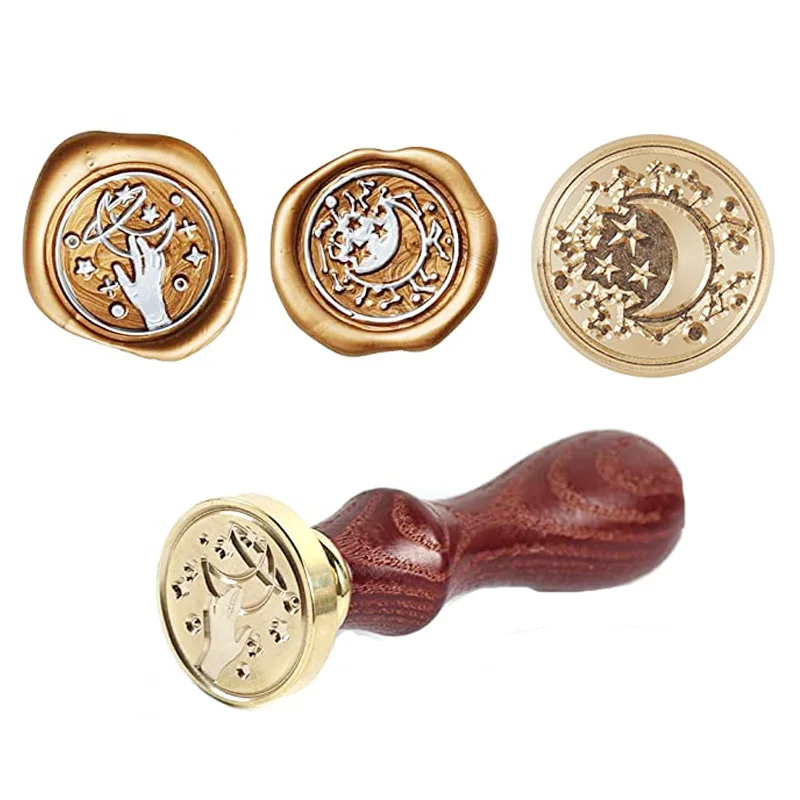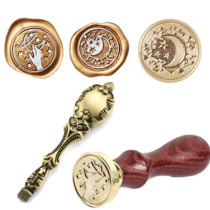 Восковая печать в стиле ретро, антикварная печать, воск, искусственная головка, свадебная декоративная металлическая луна, звезда с ручкой