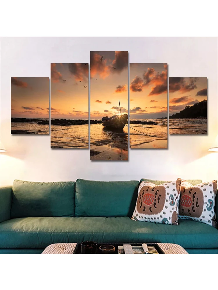 5 шт. Hd настенная Картина на холсте с лодкой заката, океан, Hd печ...