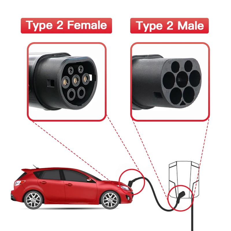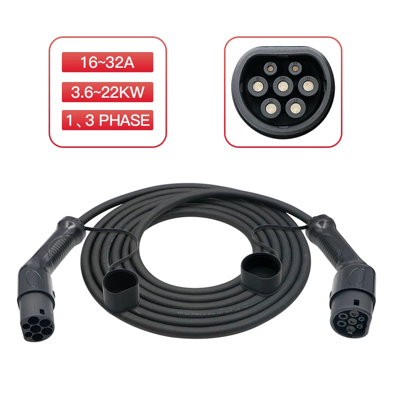 Зарядное устройство 32A для электромобилей, трехфазный кабель 22 кВт, кабель для электромобиля для автомобильной зарядной станции IEC 62196-2 типа 2 для типа 2 EVSE