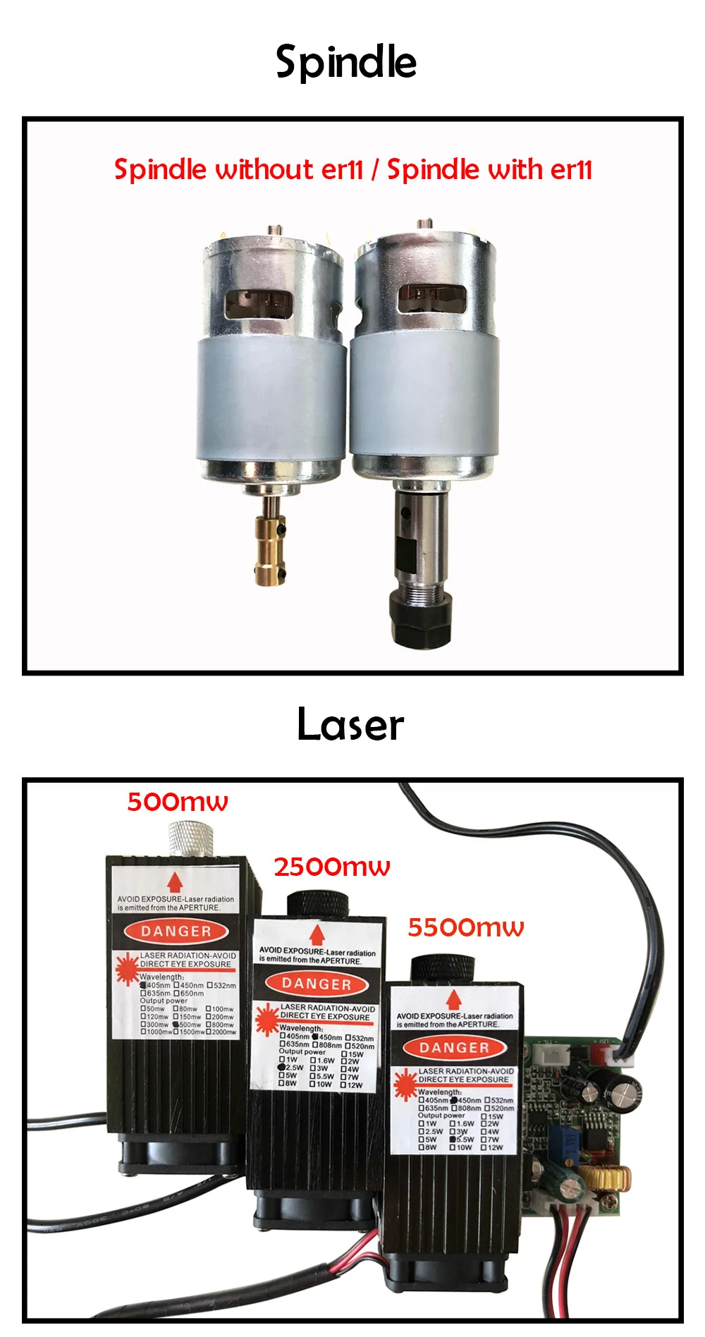 0,5 W/2,5 W 12V 405nm 5,5 W/15W 12V 450nm (15 Вт может гравировать на нержавеющей стали)