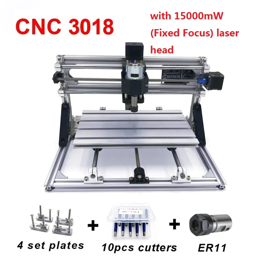 3 оси 15 Вт CNC 3018 гравировальный станок мини деревянный маршрутизатор лазерный гравер машина