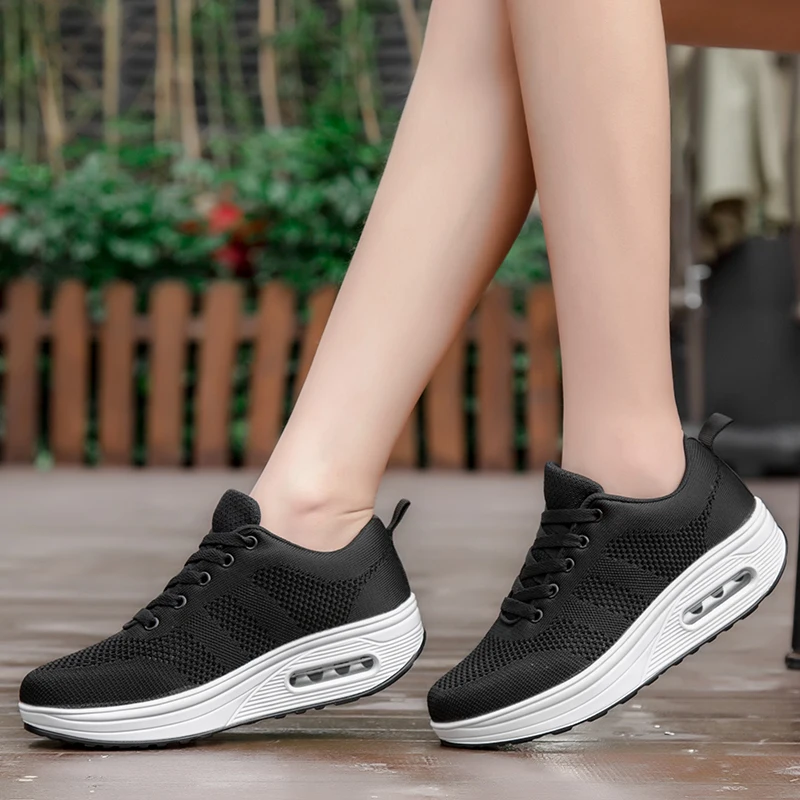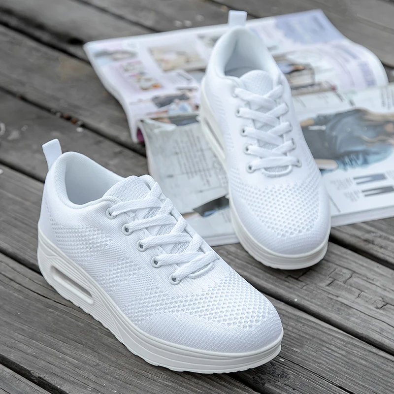 Женские кроссовки на танкетке с ажурным переплетением, повседневная обувь на толстой подошве, увеличивающая рост, с воздушной подушкой, на лето