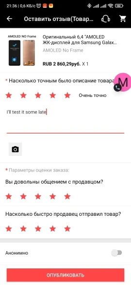 Страна: ES Color: AMOLED With Frame Доставка: Standard Shipping 21.08.2021