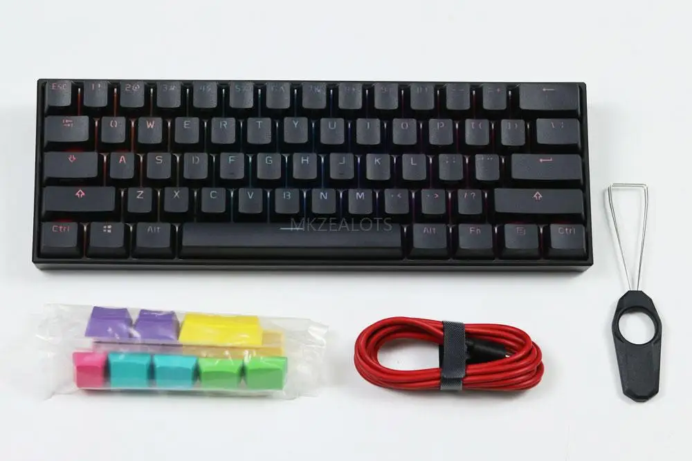 Посылка включает в себя:1 * Anne Pro 2 60% NKRO bluetooth 4.0 Type-C RGB Механическая игровая клавиатура1 * Съемник Keycap1 * USB-C кабель1*1 Набор 11 шт пустой колпачок (8 * 1.25u; 1 * 1u/2.75u/2.25u)