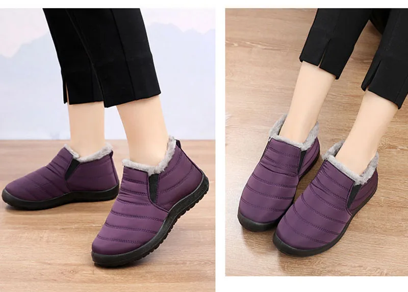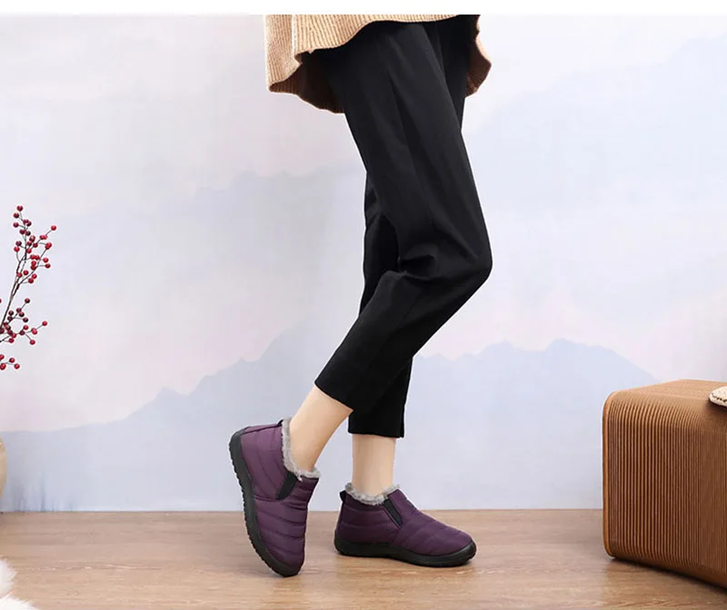 Зимняя обувь; Женские теплые плюшевые ботильоны на меху; Женская обувь на плоской подошве; Водонепроницаемая женская обувь без шнуровки; Удобные зимние кроссовки для женщин; Chaussures