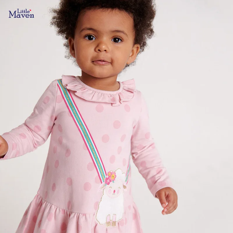 Платья для девочек; Осенняя одежда для малышей; Розовое повседневное Хлопковое платье с рисунком овечки; Vestiods; Забавное платье в горошек для детей; От 2 до 7 лет