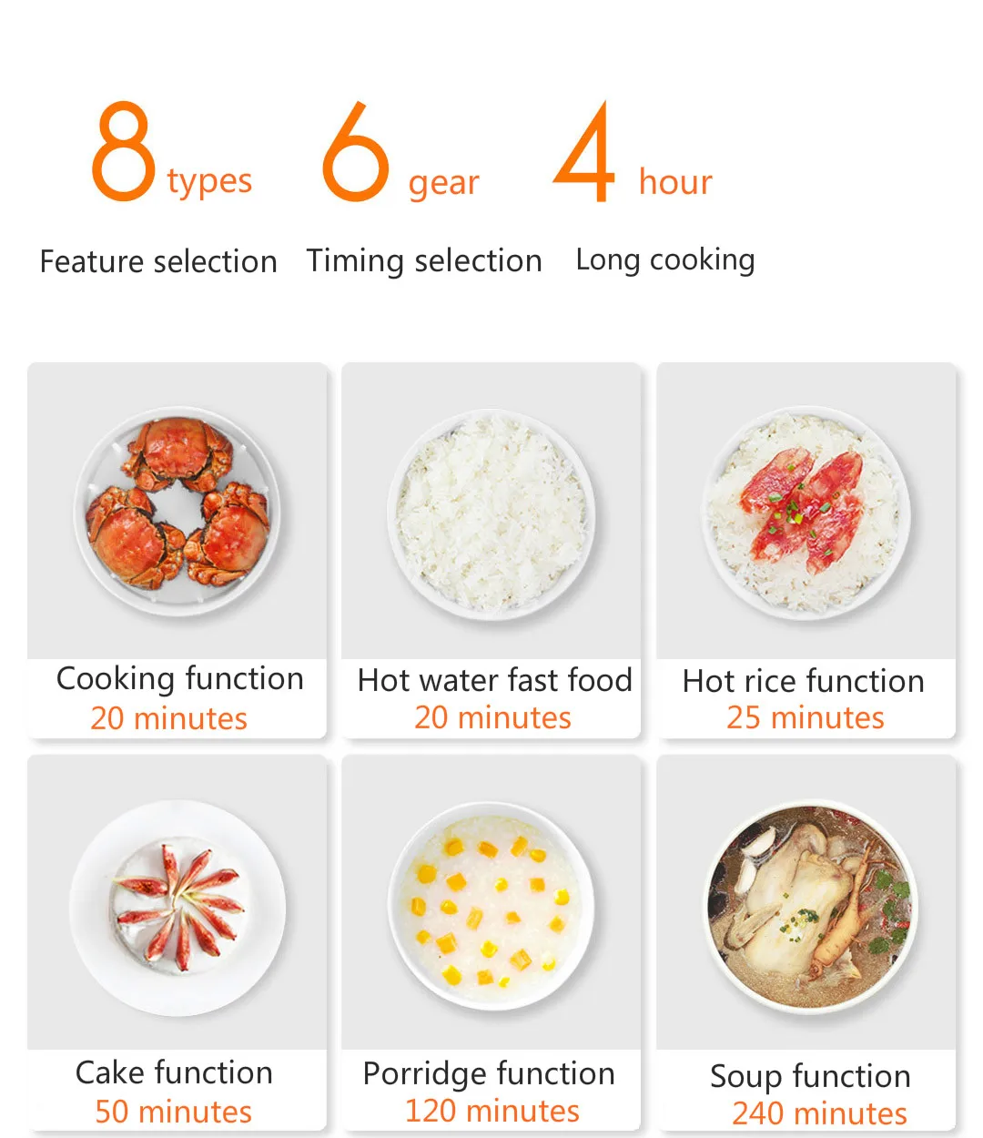 Есть 24 вида режимов выбора, и время приготовления может быть отрегулировано одной кнопкой. Большой участок, Динамическая мощность, горячая вода для быстрого питания, 24 часа бесплатного назначения.