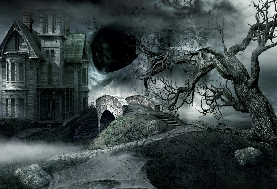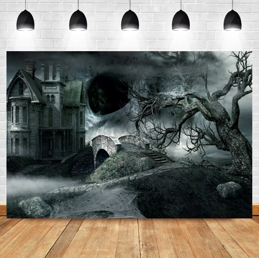 Laeacco Хэллоуин, ужас, замок, свод моста, старые ветки деревьев, фотография, фон для фотостудии