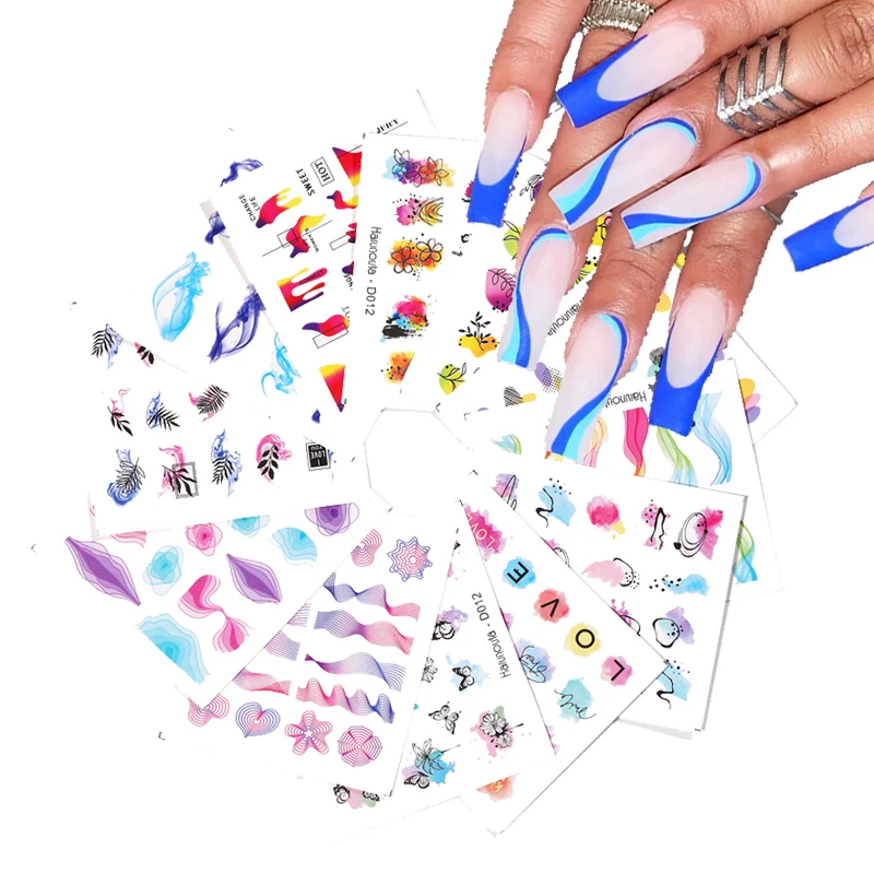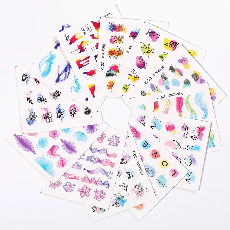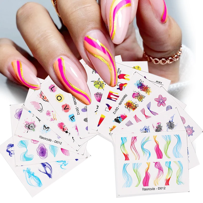 12 шт., переводные наклейки для ногтей с геометрическими линиями