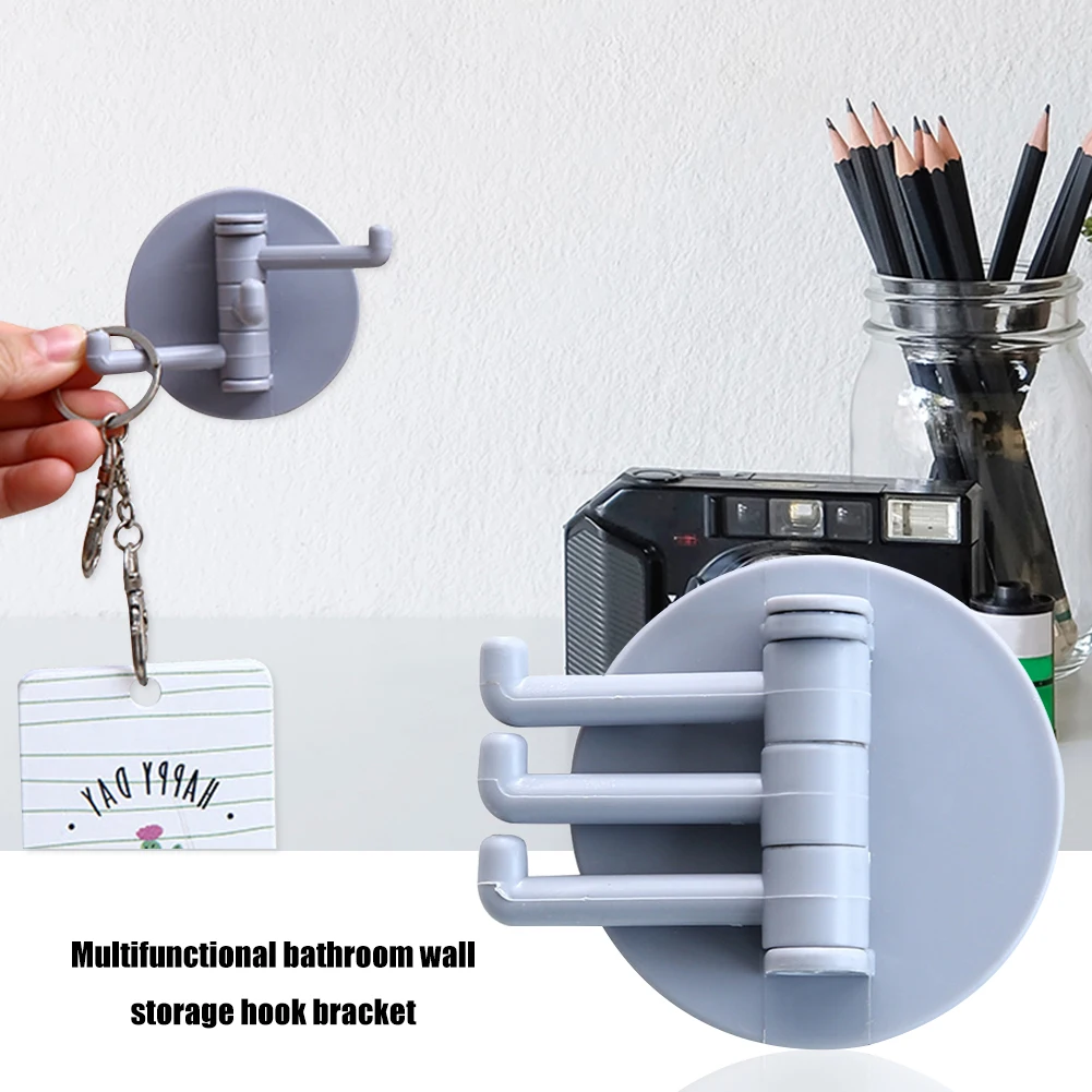 Многофункциональная настенная полка для ванной комнаты, не требующая отверстий, немаркая вешалка, 3 вращающихся бесшовных клейких крючка, мощный липкий крючок